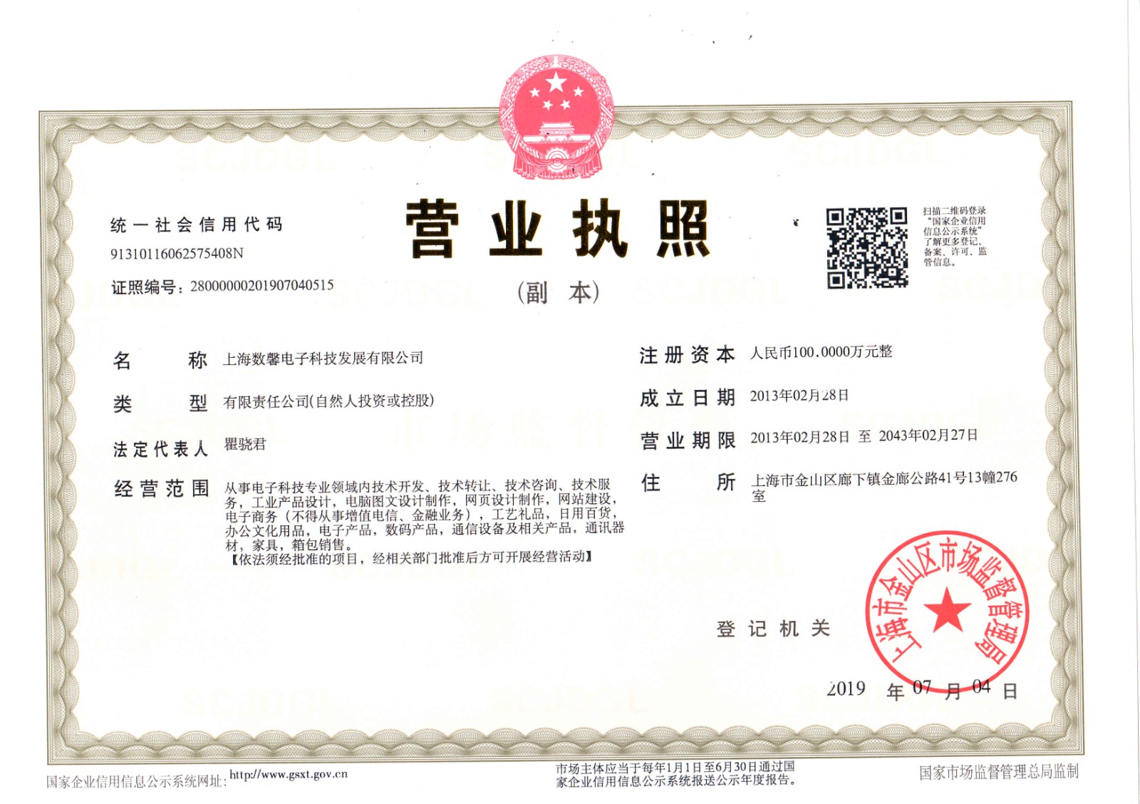 - 營業(yè)執(zhí)照:
