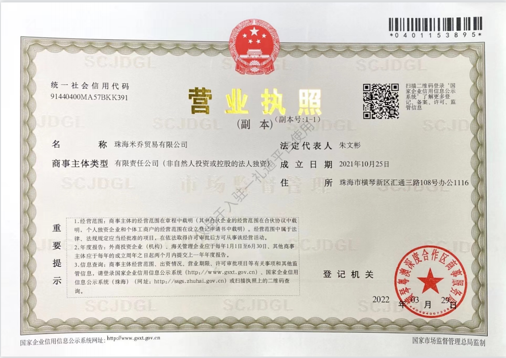 - 經營范圍:電子產品銷售;醫護人員防護用品零售;醫護人員防護用品批發;第一類醫療器械銷售;第二類醫療器械銷售;針紡織品銷售;機械設備銷售;家具銷售;辦公用品銷售;國內貿易代理;貨物進出口;技術進出口;計算機軟硬件及輔助設備零售。