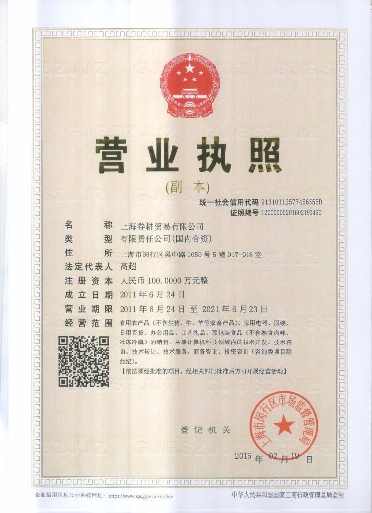 - 營業執照: