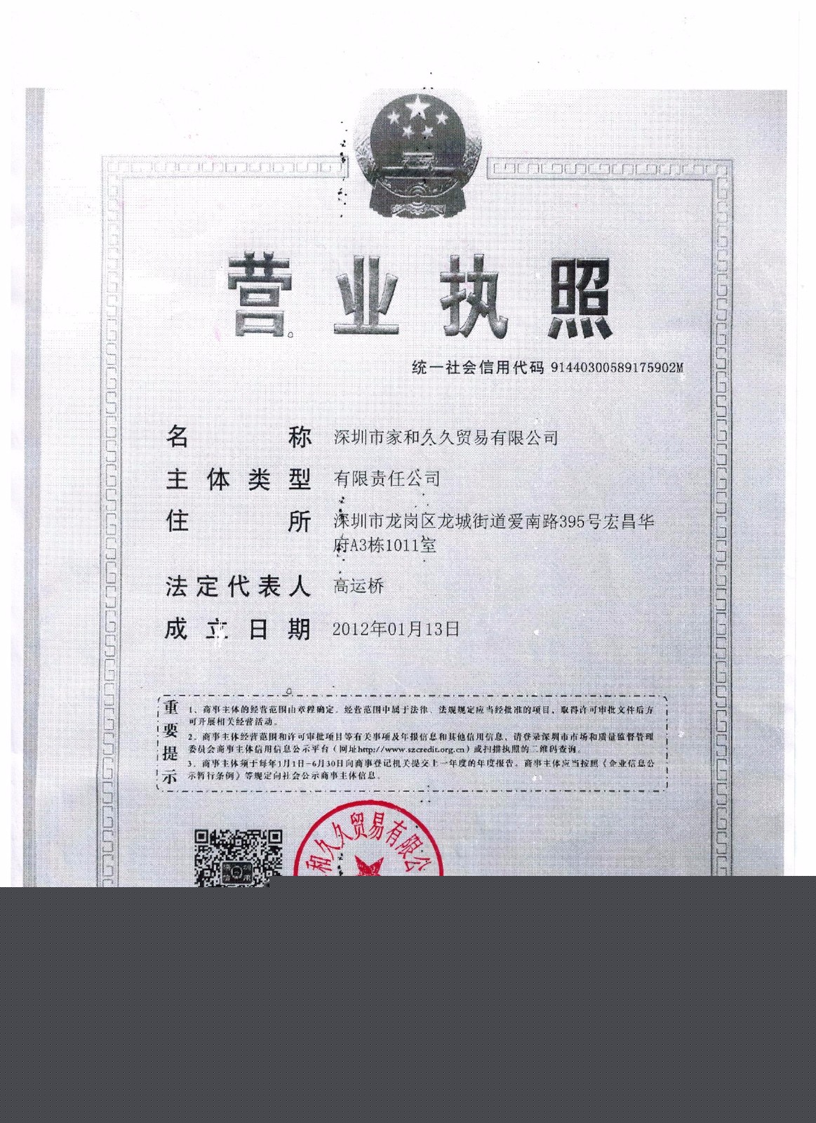 - 營業執照: