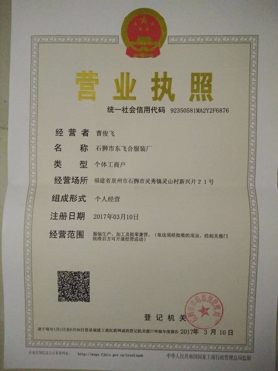- 店鋪名稱:東飛合服裝廠