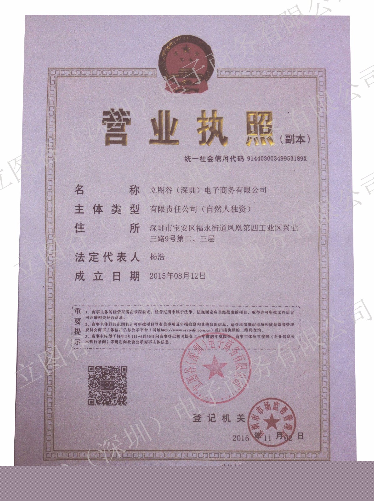 - 營業(yè)執(zhí)照: