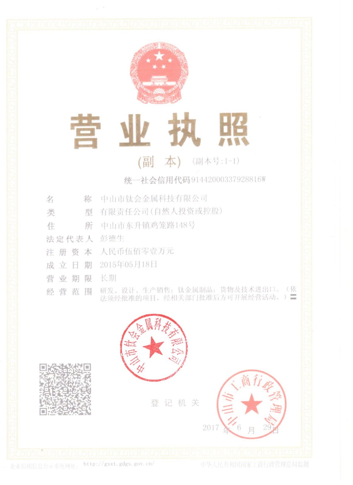 - 經營范圍:研發,設計,生產銷售:鈦金屬制品;貨物及技術進出口。
