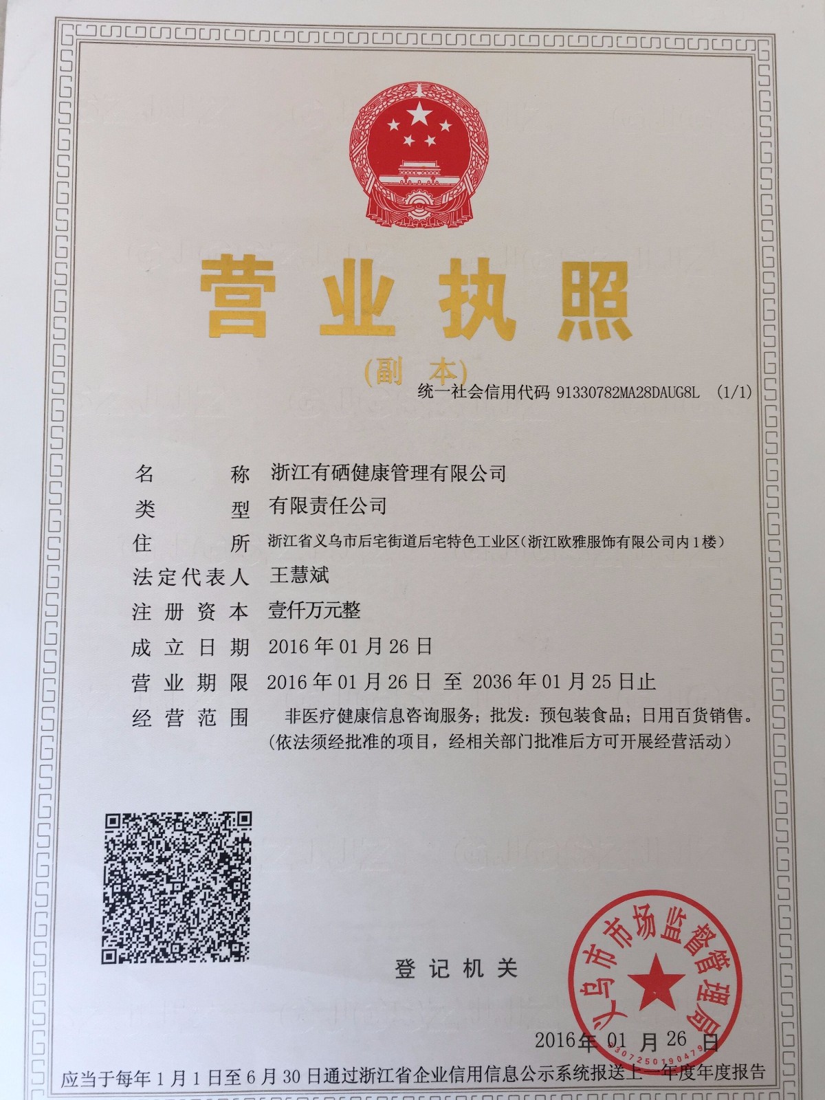 - 營業(yè)執(zhí)照: