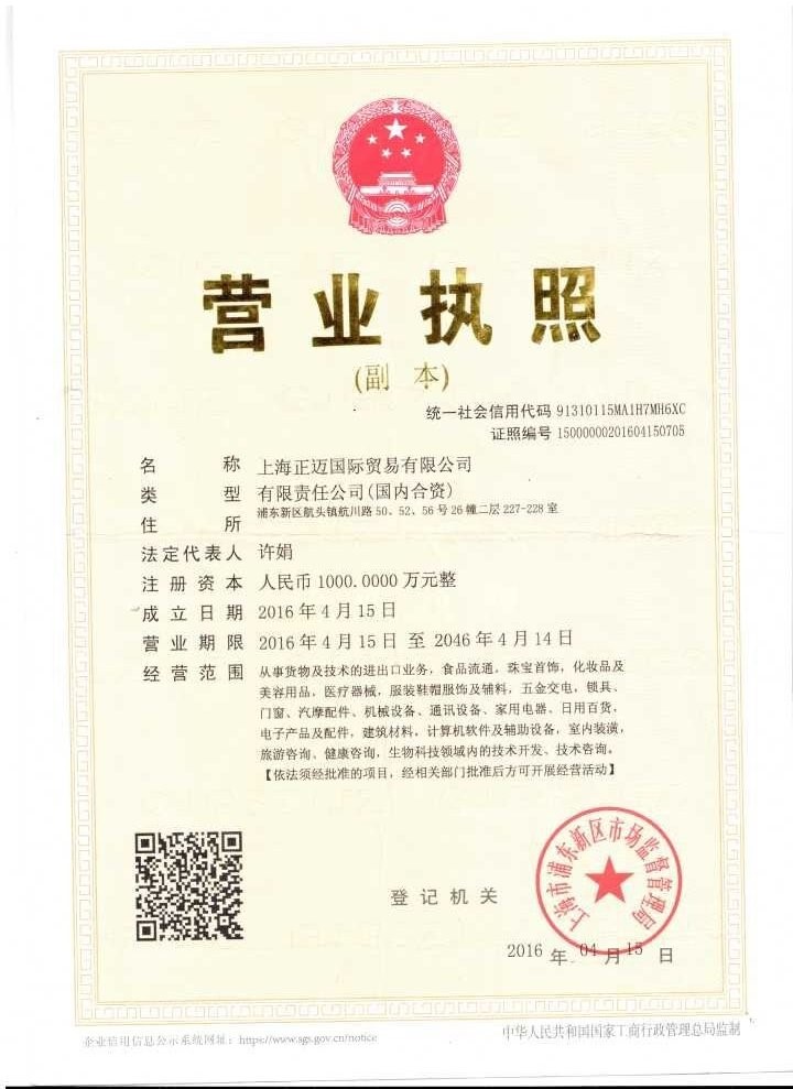 - 營業執照: