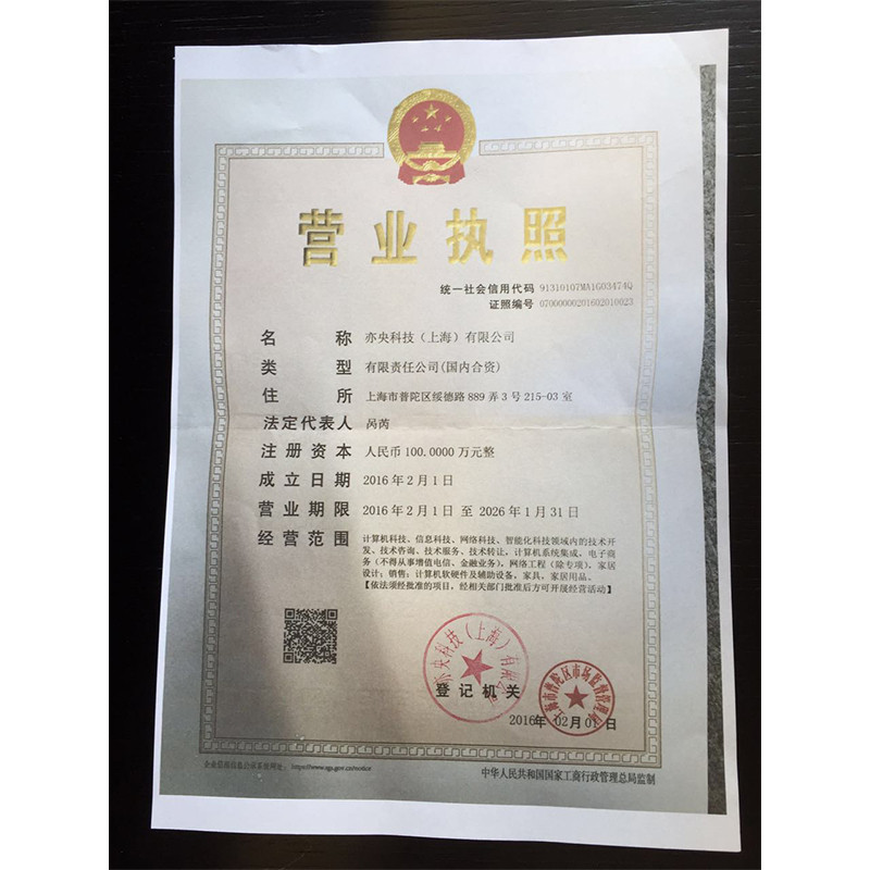 - 營業執照: