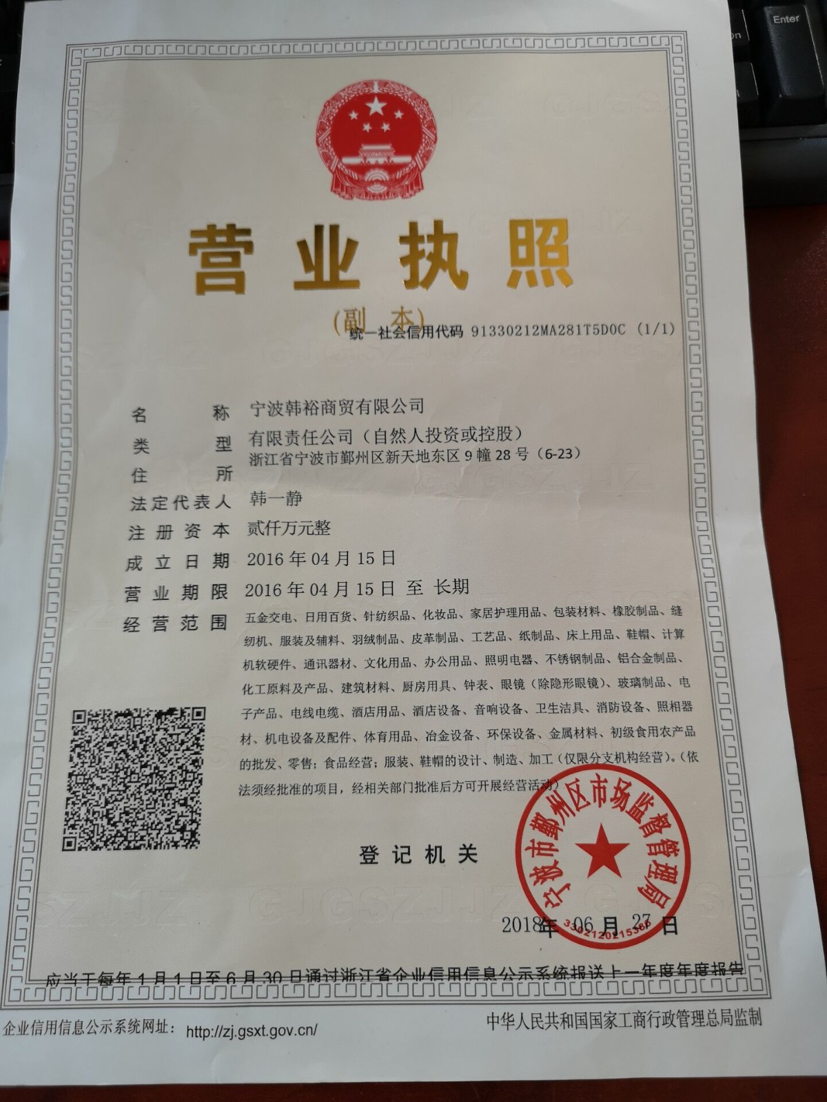 - 營業(yè)執(zhí)照: