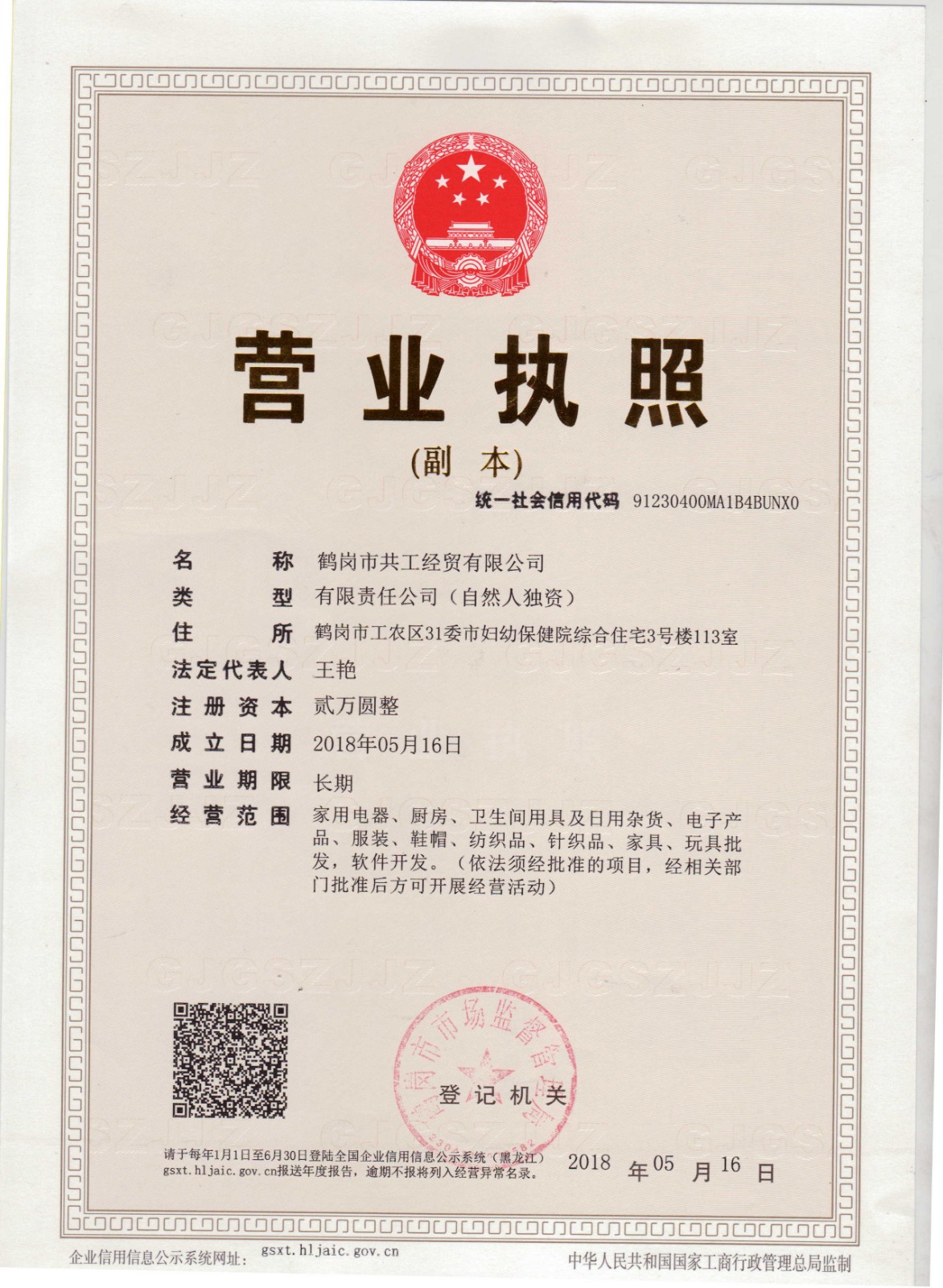 • 營(yíng)業(yè)執(zhí)照: 查看