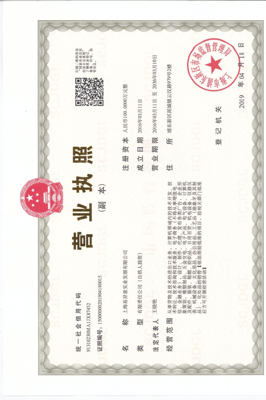 - 營業執照: