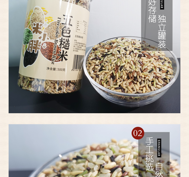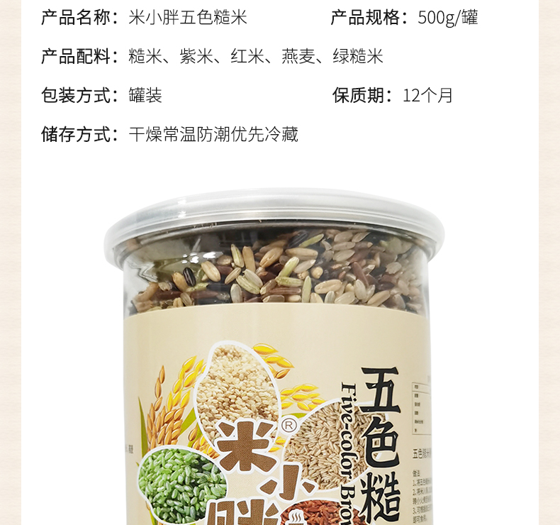 米小胖五色糙米 東北粗糧健康雜糧代餐米500g*2罐