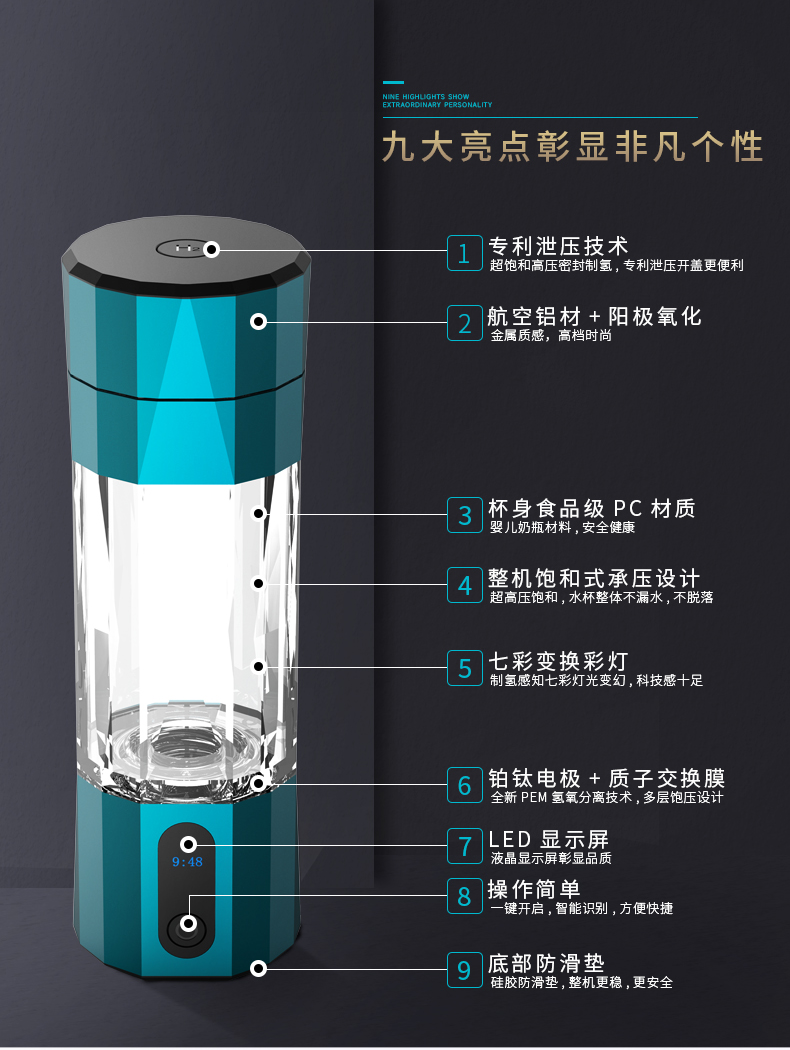 翰樂茶具半自動時來運轉泡茶神器描金高端輕奢HL-SMSH石墨生花9件套