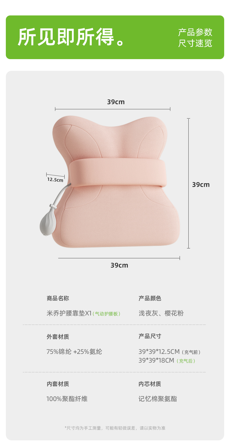 商品名稱:米喬(minicute) 米喬人體工學腰墊辦公室腰靠久坐護腰靠墊座椅靠背墊辦公椅腰枕 頂托款