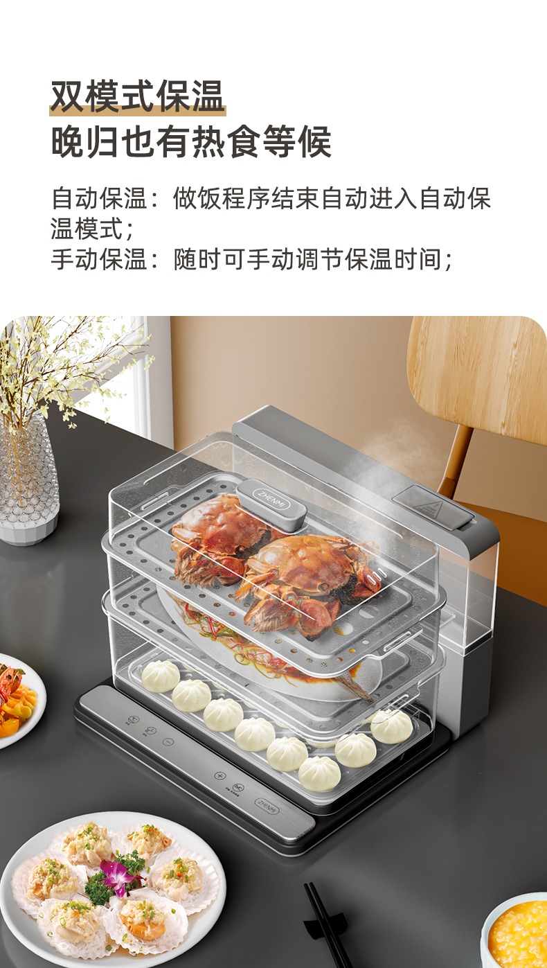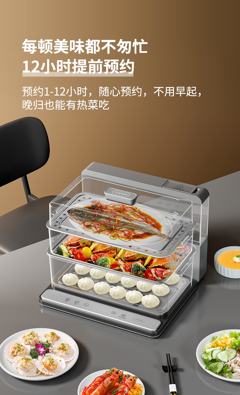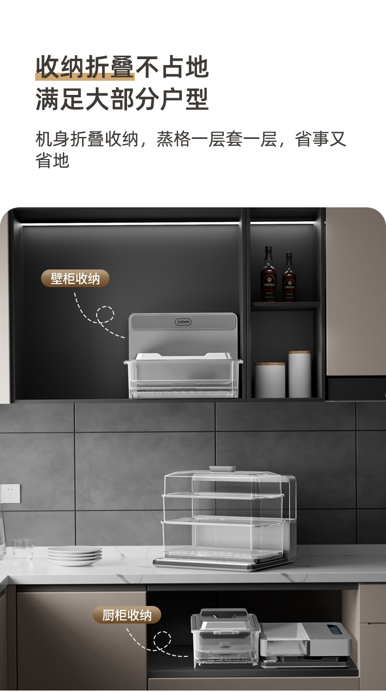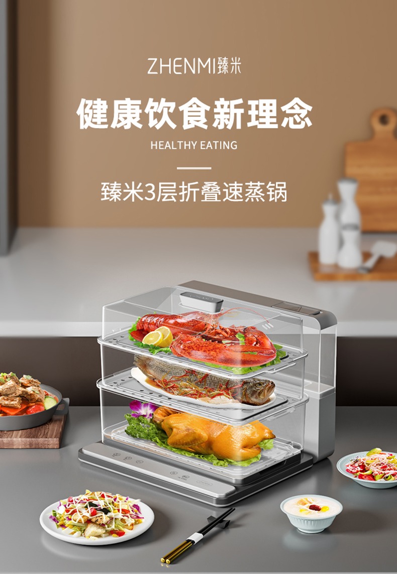 臻米(ZHENMI)折疊速蒸鍋電蒸鍋家用蒸汽鍋小型多功能大容量三層多層電蒸箱 白色