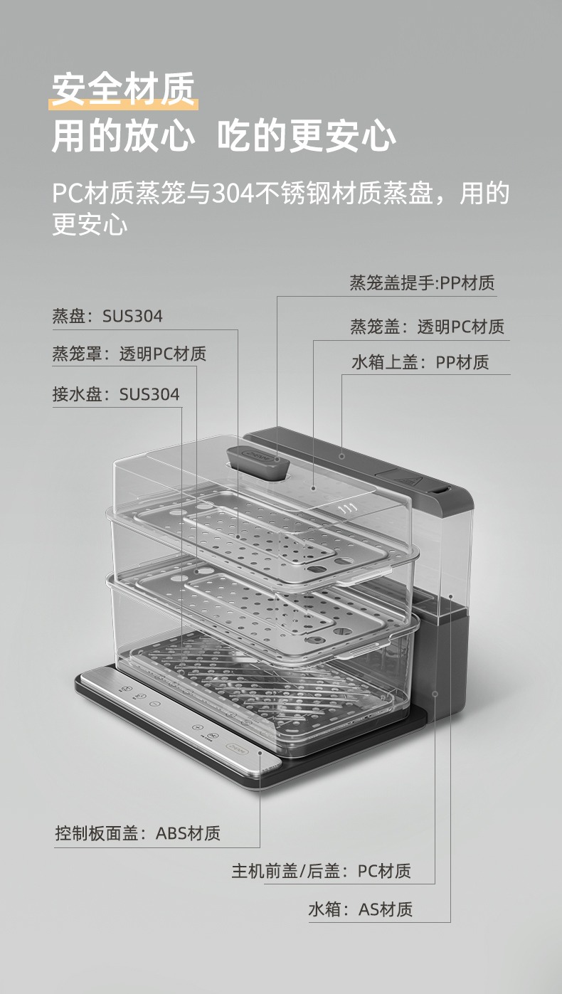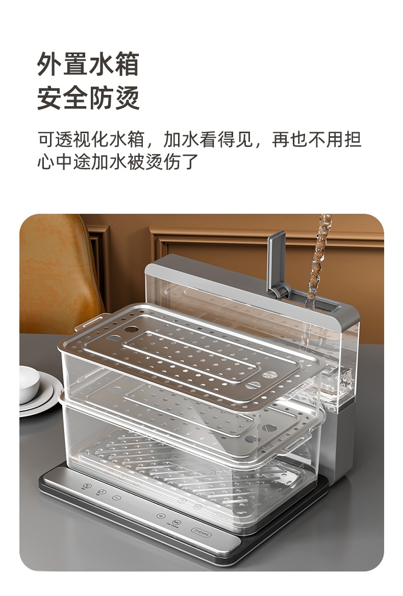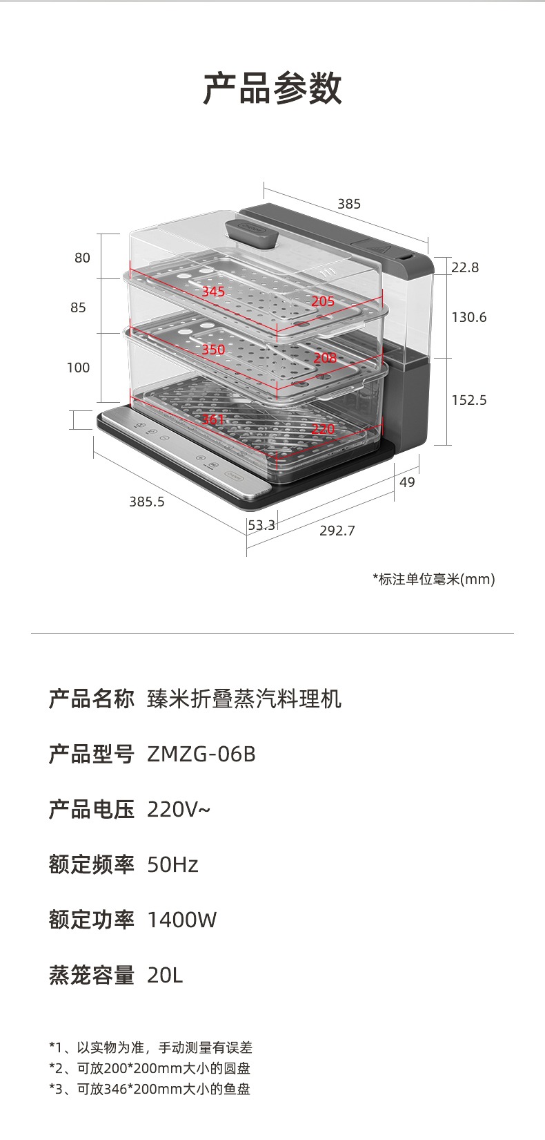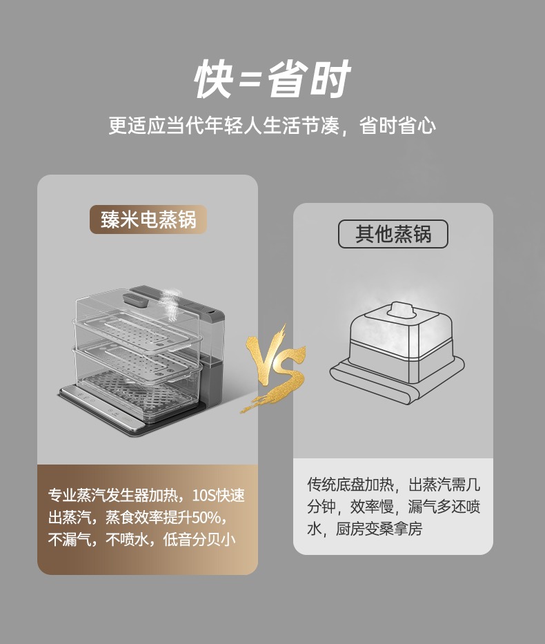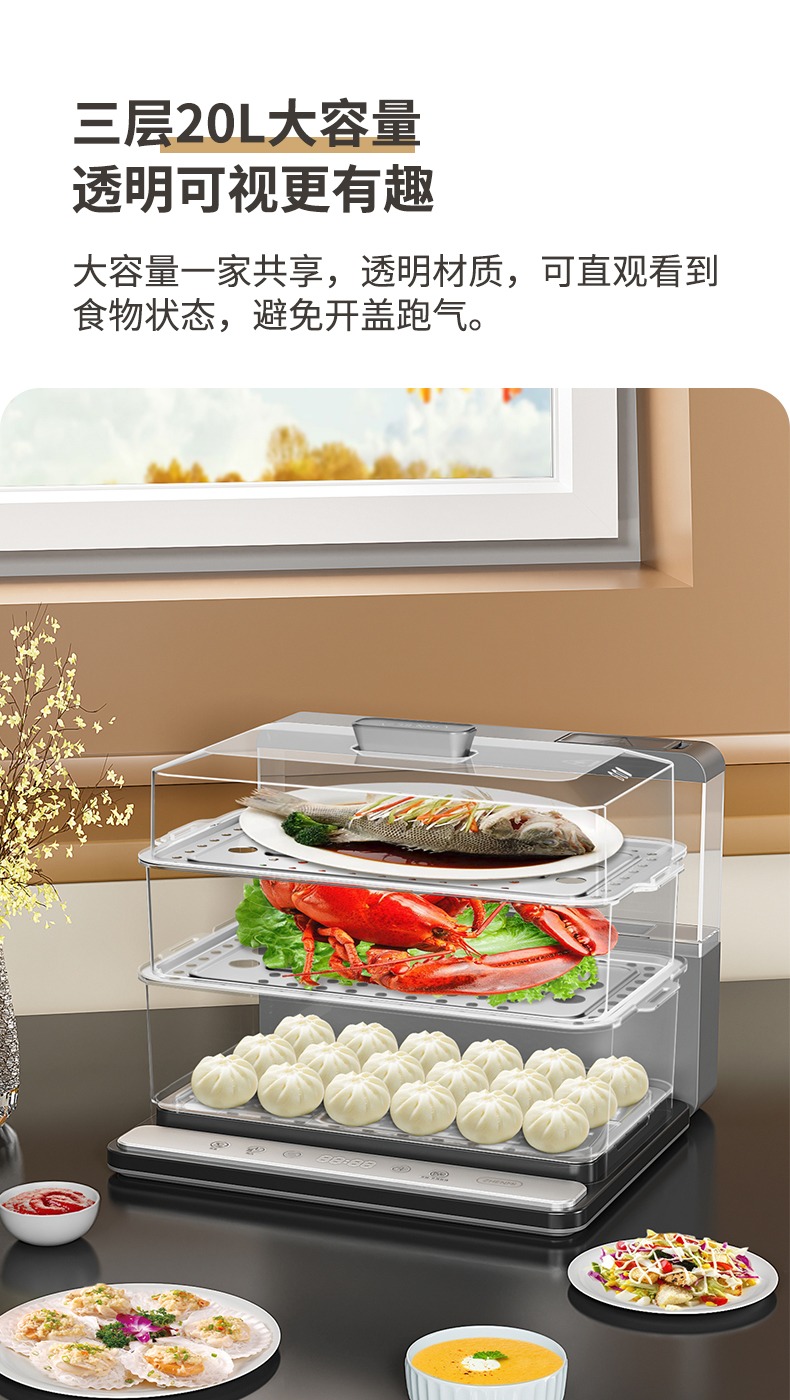 臻米(ZHENMI)折疊速蒸鍋電蒸鍋家用蒸汽鍋小型多功能大容量三層多層電蒸箱 白色