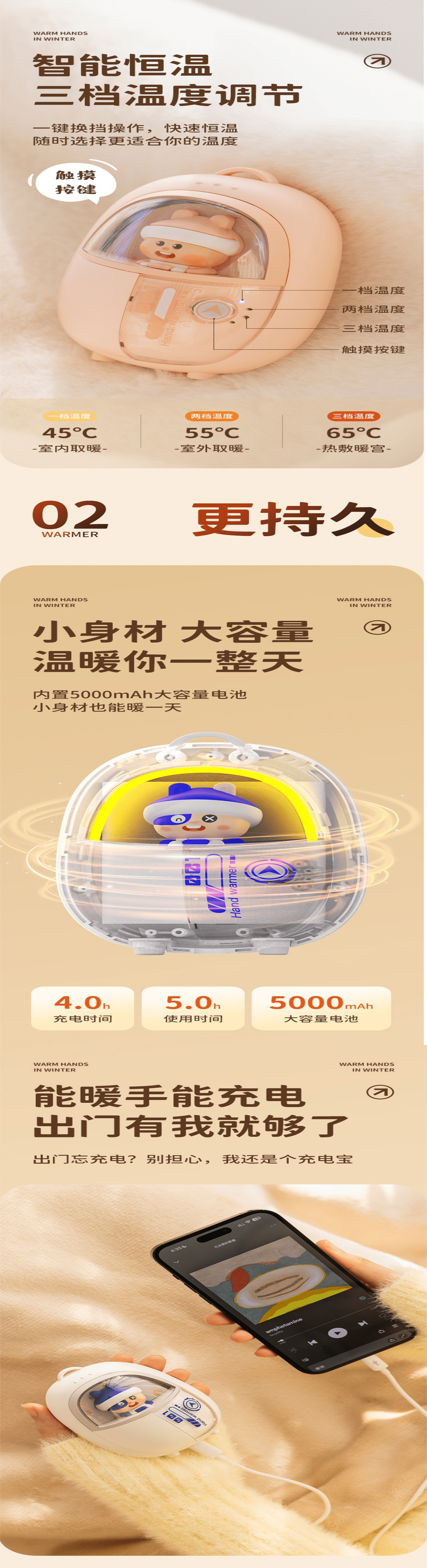 機甲兔usb充電暖手寶二合一暖手防爆學生可愛女生充電暖手禮物