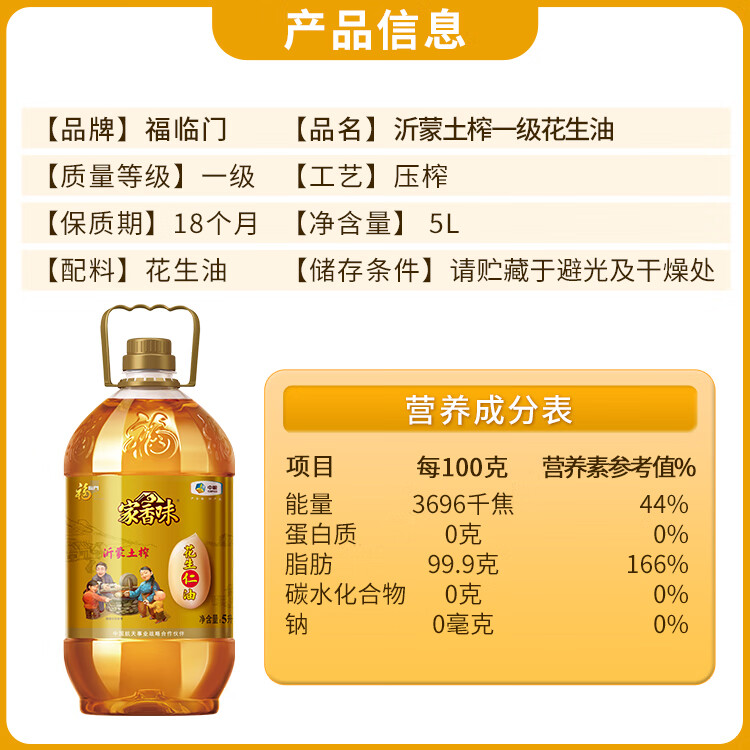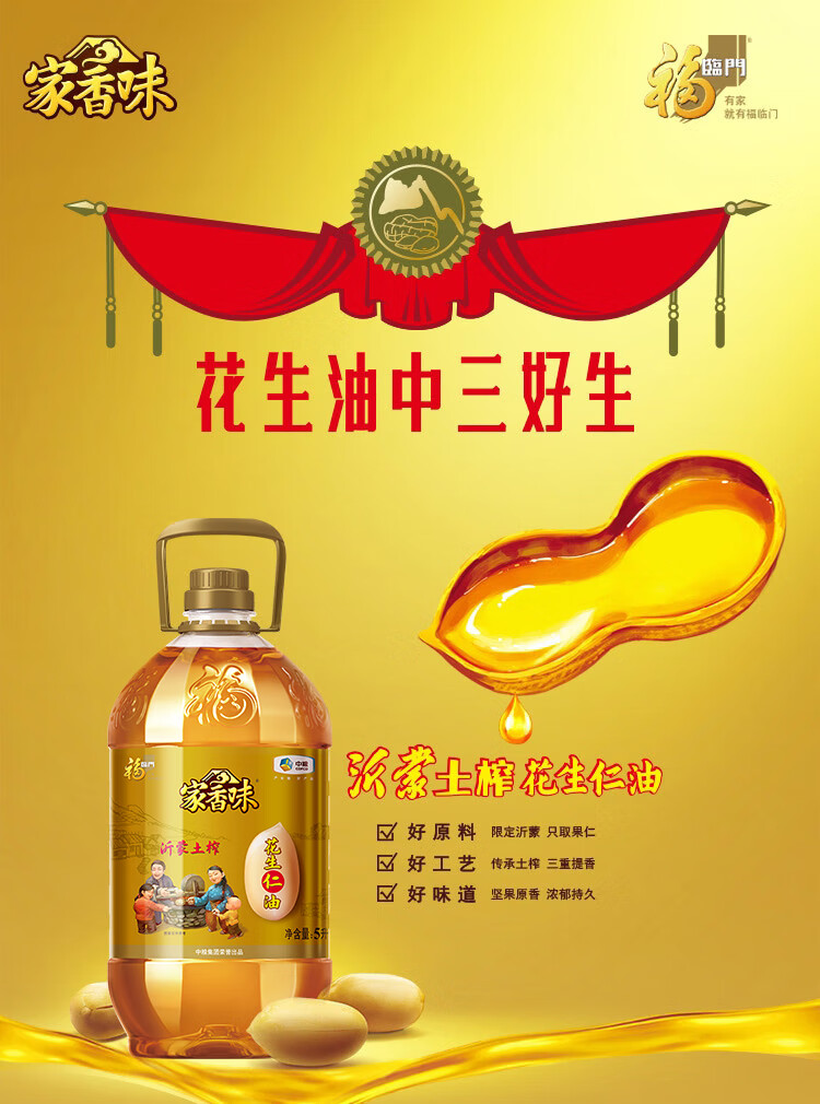福臨門家香味沂蒙土榨花生仁油5L