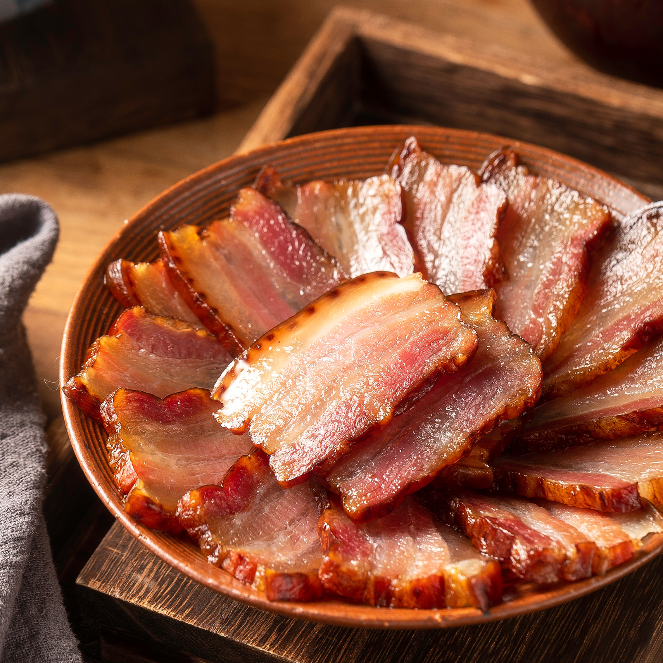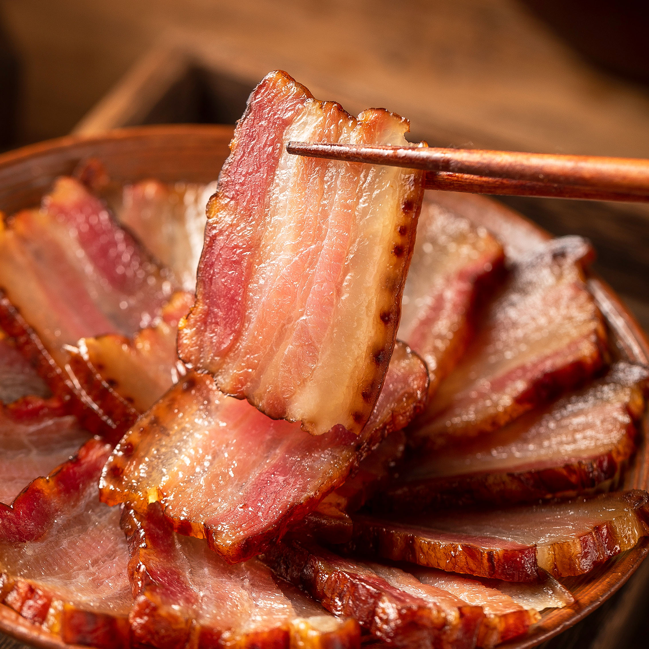 貴州特產(chǎn)傳統(tǒng)煙熏五花臘肉、精選黔北農(nóng)家散養(yǎng)土豬、臘肉色澤鮮艷、黃里透紅、松柏木熏制,帶有濃郁的柴火和果木香味、味道醇香、肥而不膩