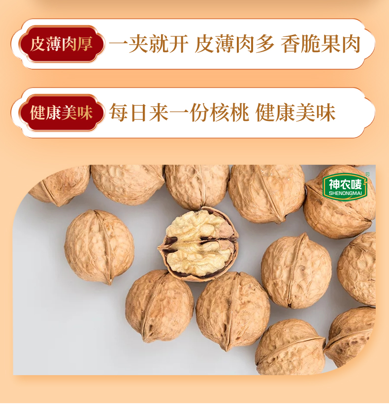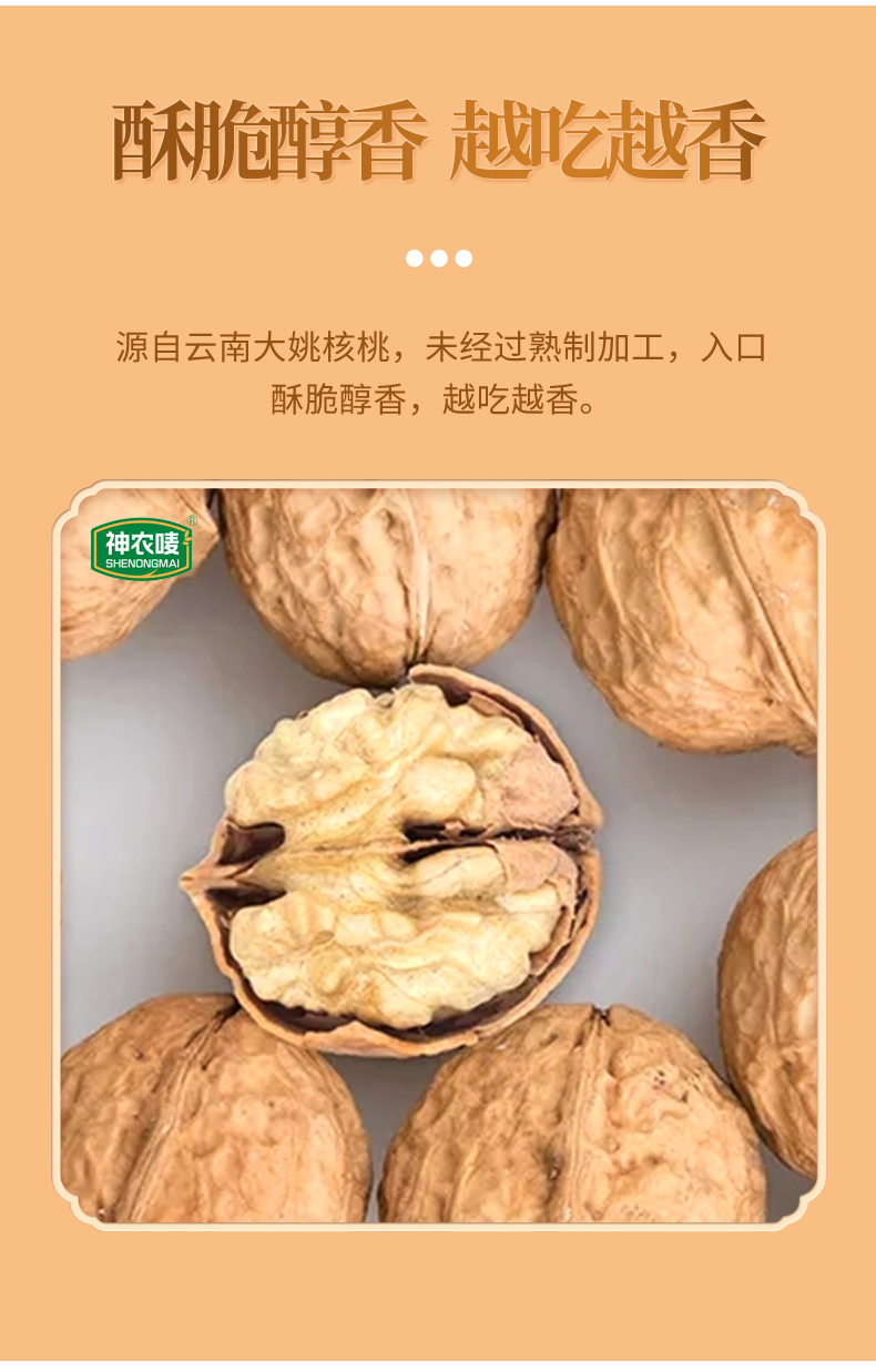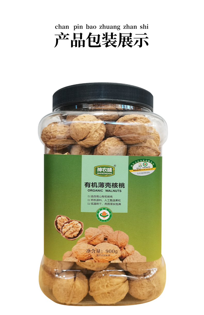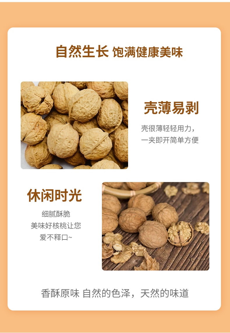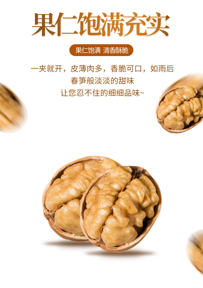 原料產地貴州、云南有機種植基地的薄殼核桃、果粒均一,無苦不澀、清香回甜。