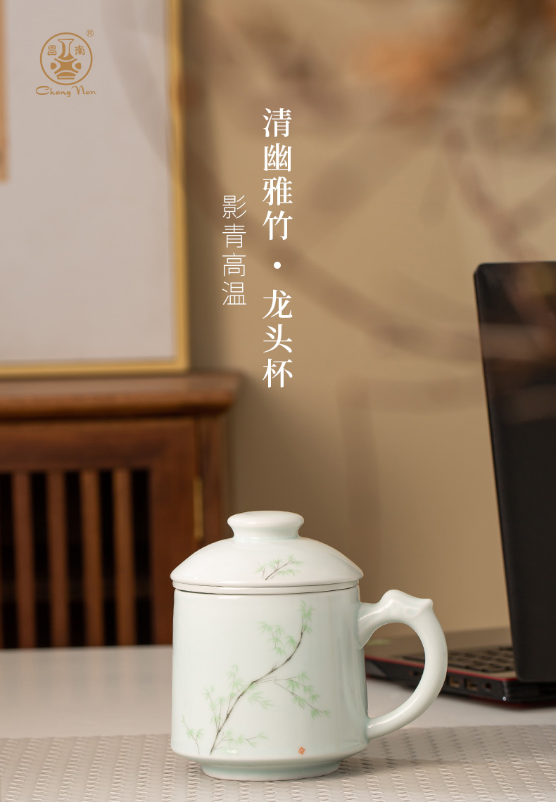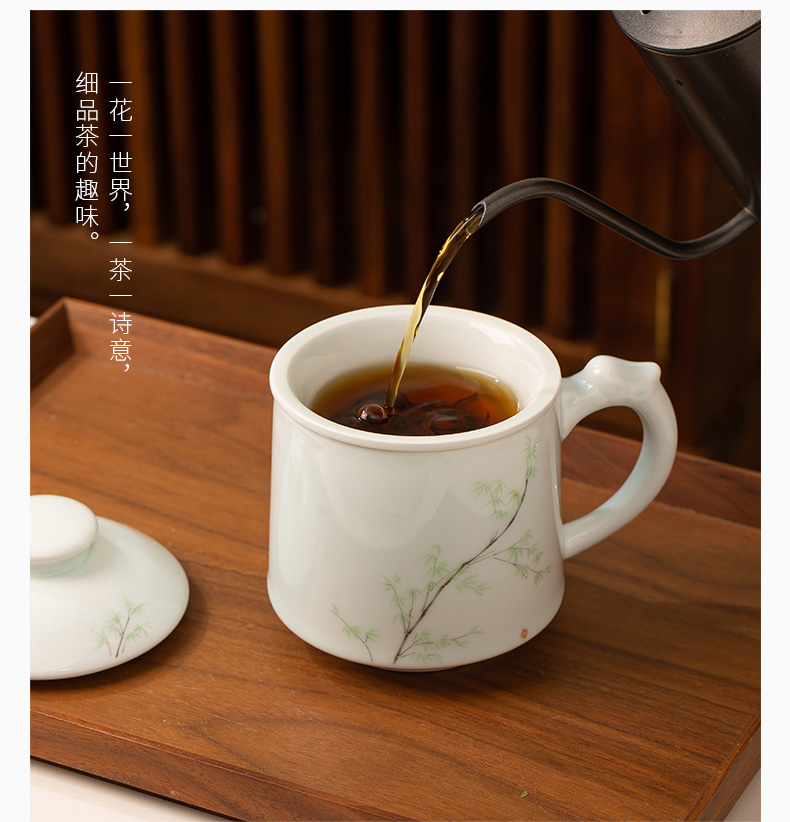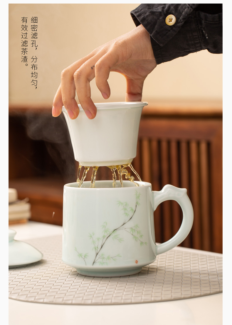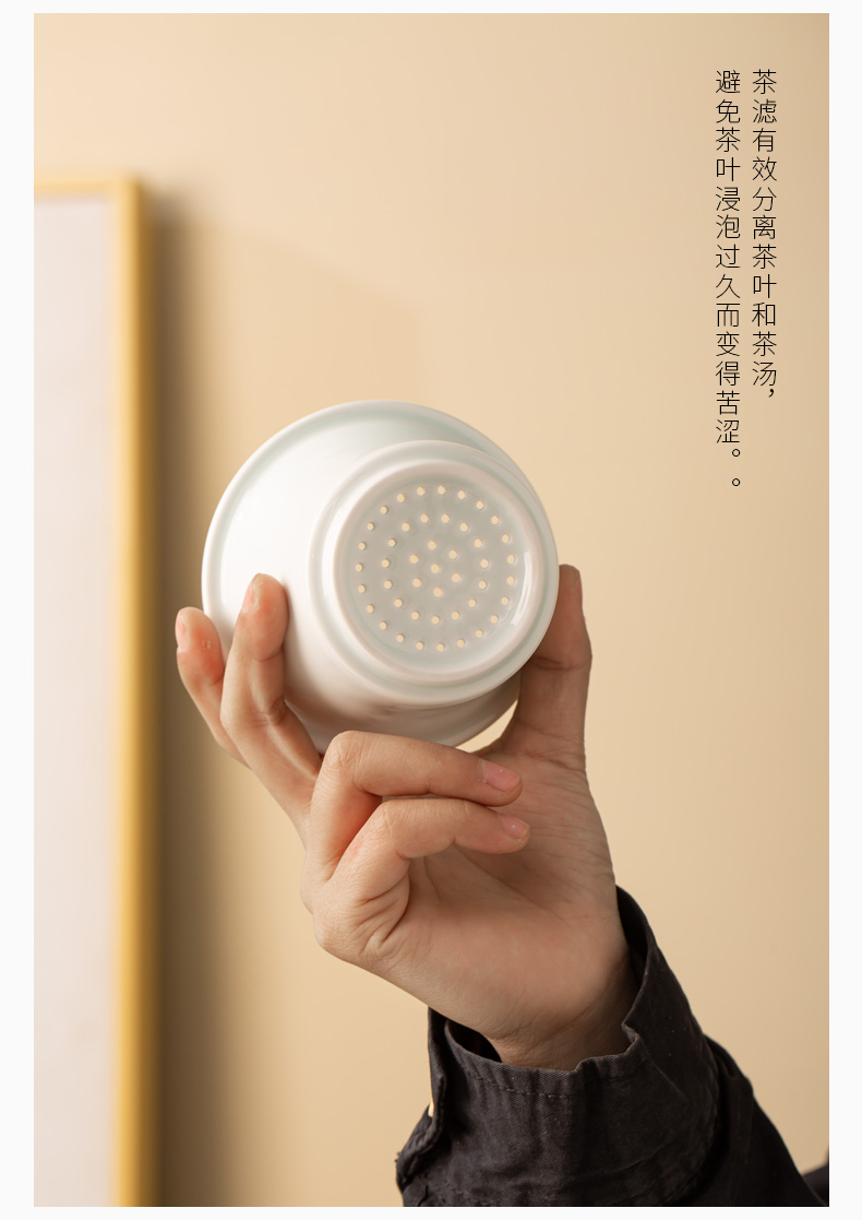 昌南景德鎮陶瓷茶水分離帶蓋過濾茶具辦公室茶杯套裝高溫老板杯會議室