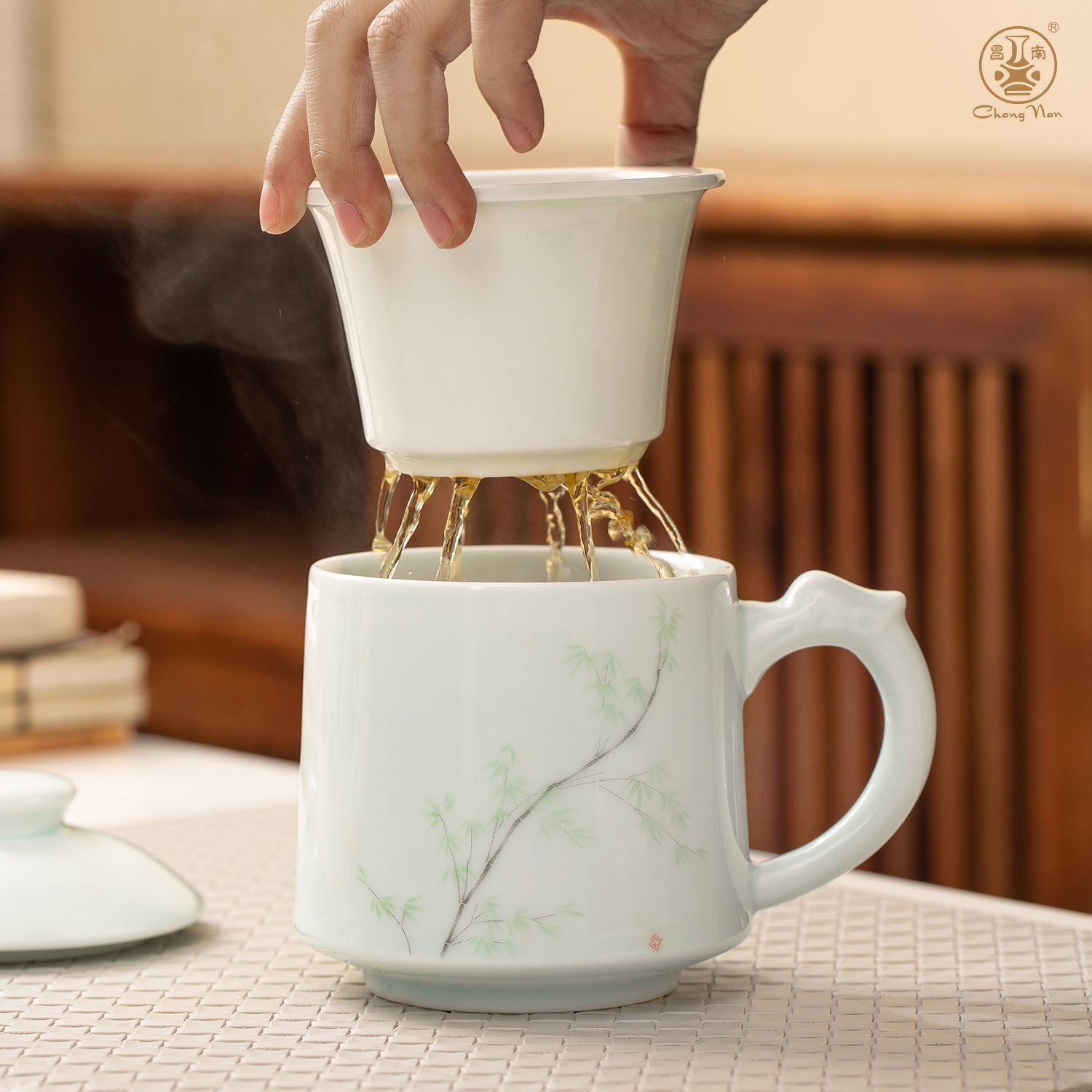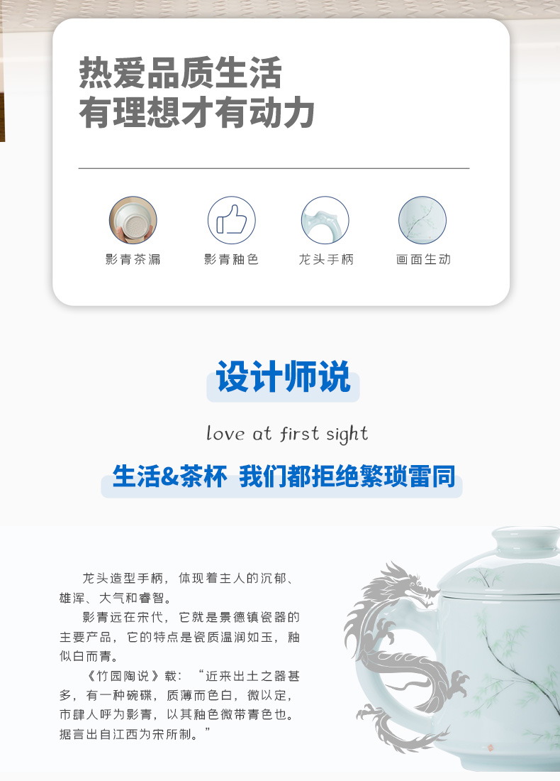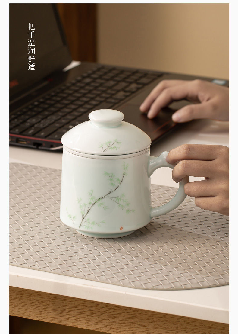 昌南景德鎮陶瓷茶水分離帶蓋過濾茶具辦公室茶杯套裝高溫老板杯會議室