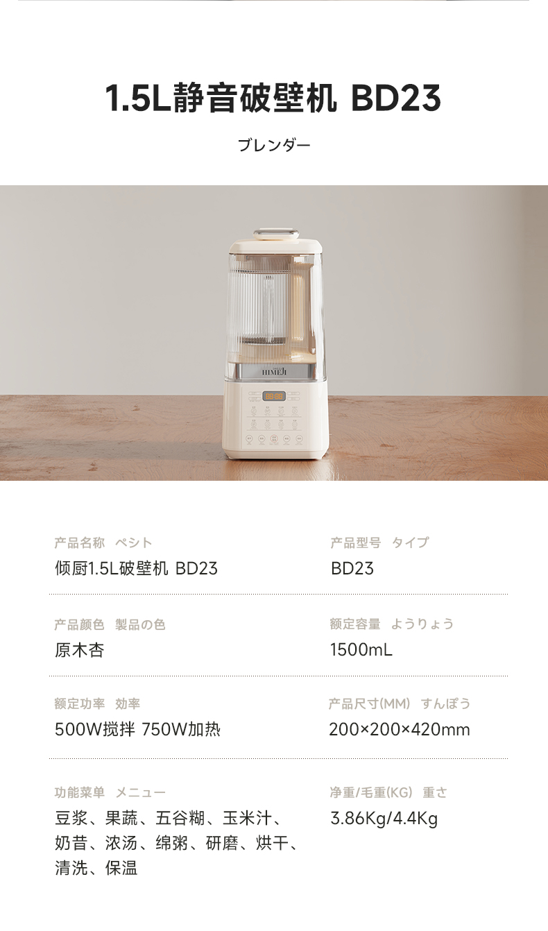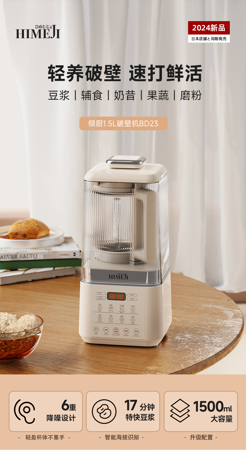 傾廚二代輕音破壁機家用1.5L豆漿機冷熱榨汁機靜音無渣小型
