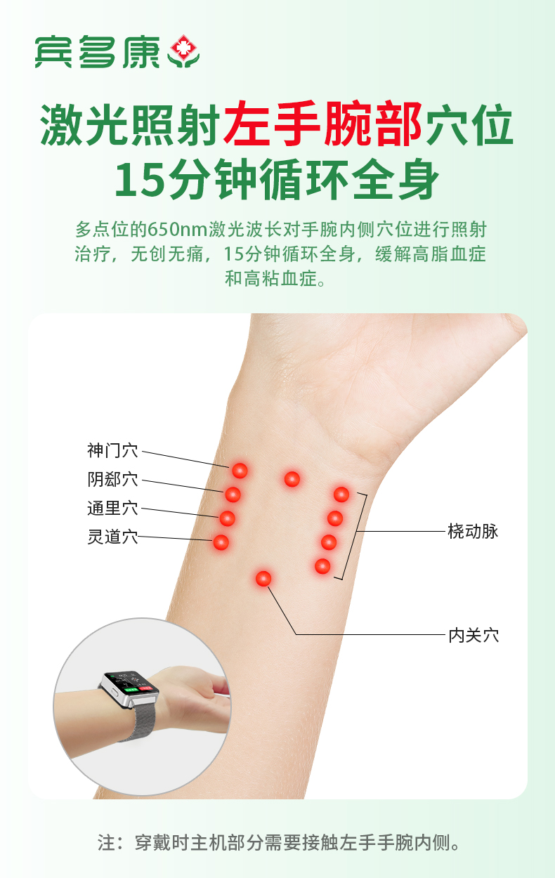 半導(dǎo)體激光血氧治療儀腕表式降三高血壓血脂血紅光理療器醫(yī)用