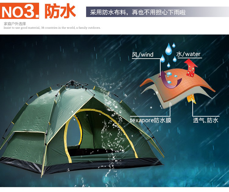 材質:210T防潑水滌塔夫 耐水壓:3000MM 顏色:多色 特點:雙層防蚊蟲等