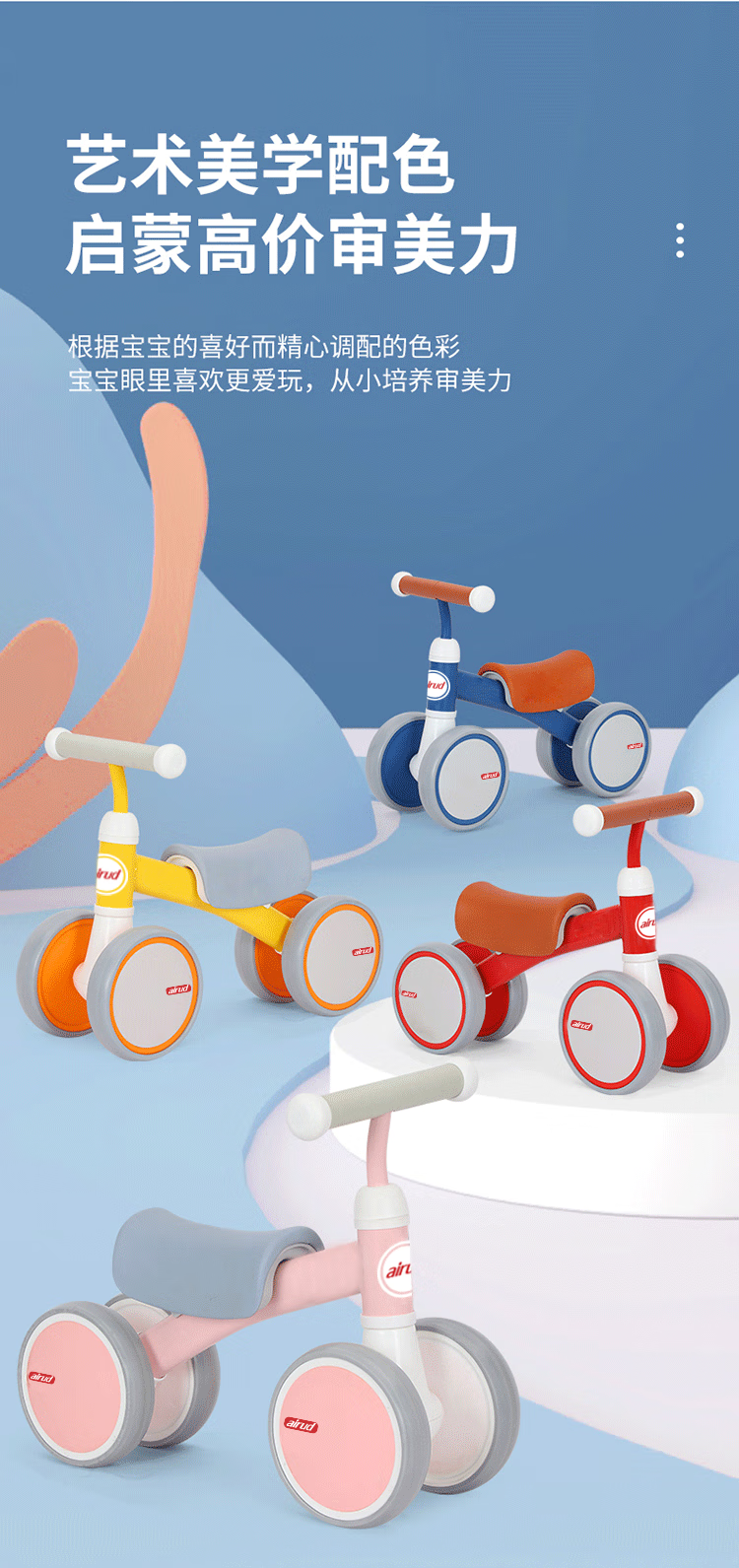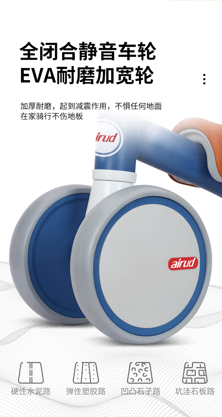 airud兒童滑板車學(xué)步坐著滑;舒適海綿墊寬大座椅,限位轉(zhuǎn)向?qū)殞毟踩箤殞氺趴峄小]喬ゲ捎酶邚桬VA材質(zhì),防滑耐磨無懼顛簸,在家玩耍也不怕吵,適合多場景玩樂。