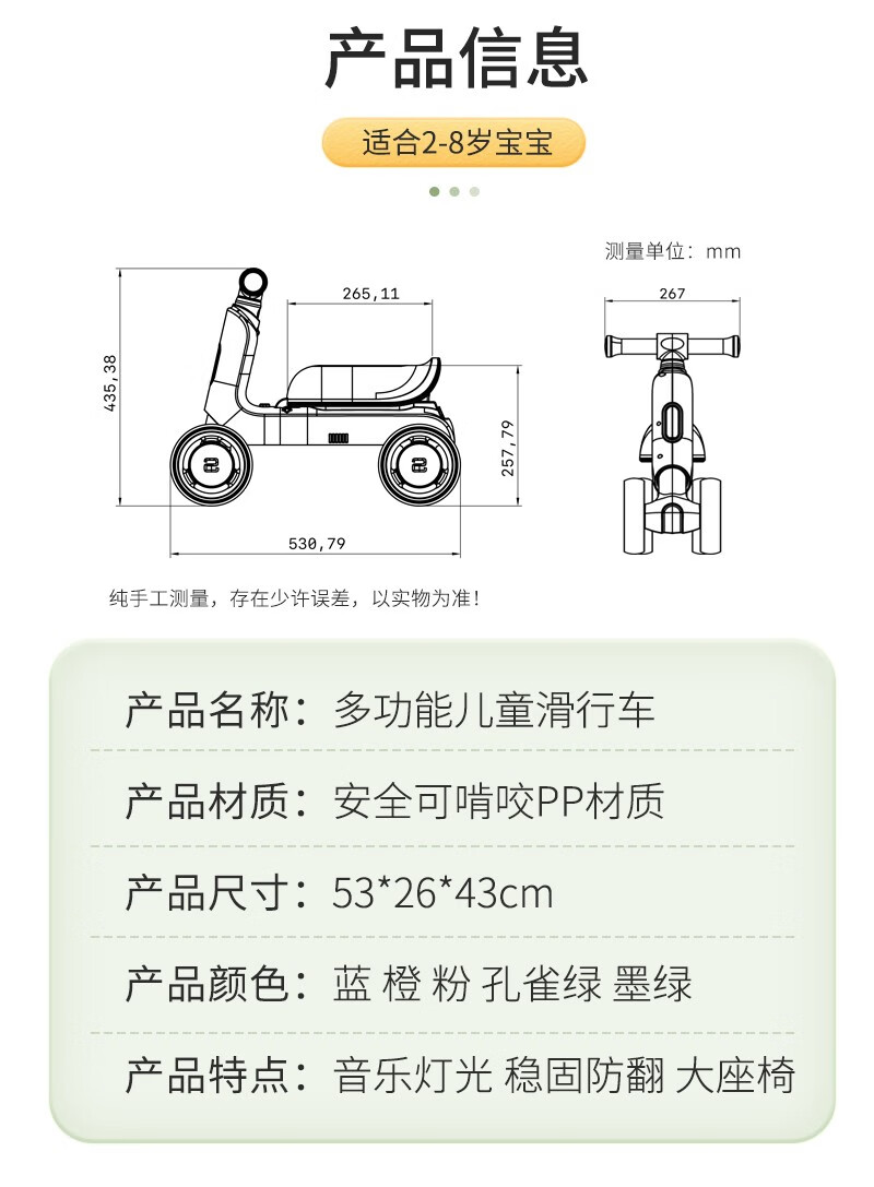 配置:整車快裝,整車環(huán)保材質(zhì),弧形舒適座椅,環(huán)保高密度EVA發(fā)泡輪。