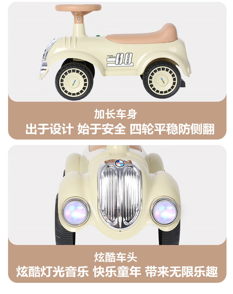 滑行款 音樂燈光,四輪防側翻,騎行玩耍穩(wěn)穩(wěn)的,低重心穩(wěn)固結構寶寶玩耍更平穩(wěn)防側翻