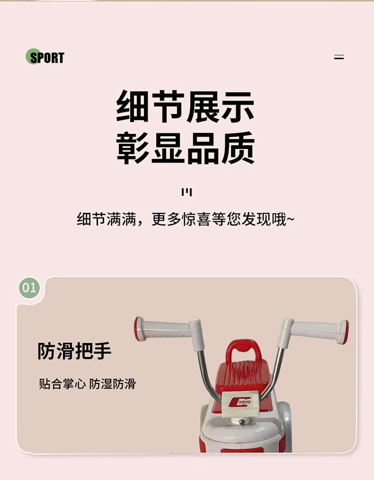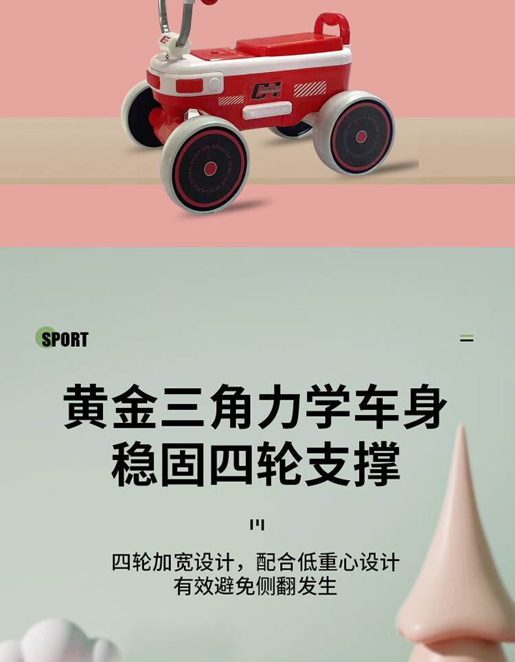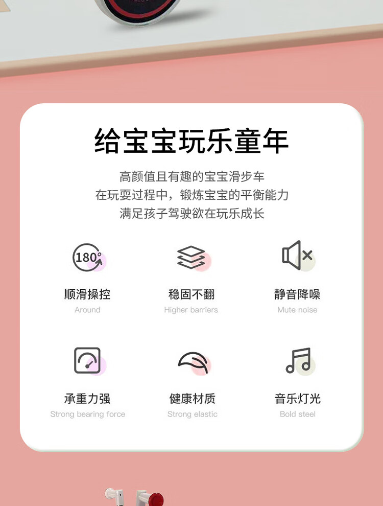 EVA輪胎降音靜音防滑耐磨無懼顛簸感,帶有炫酷燈光,早教音樂,限位轉向更安全,讓寶寶健康快樂的成長!