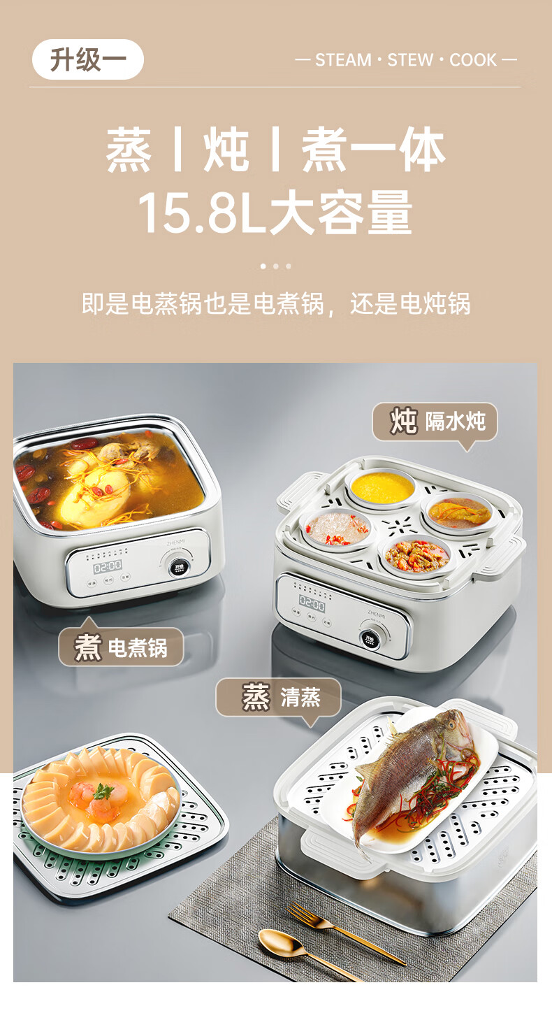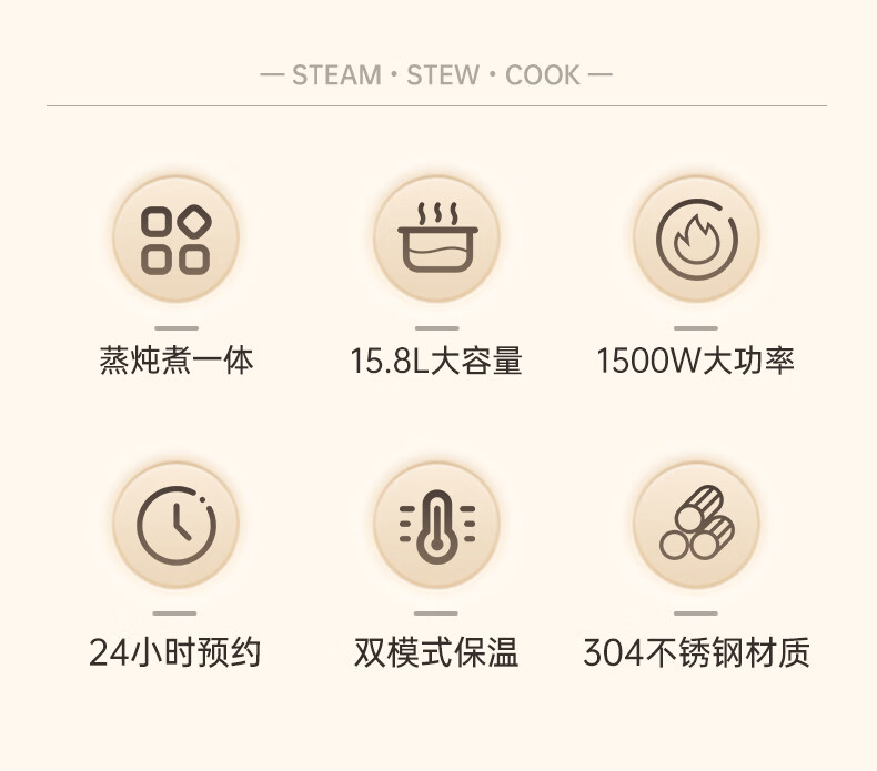 全新升級,15.8L大容量,蒸|燉|煮一體