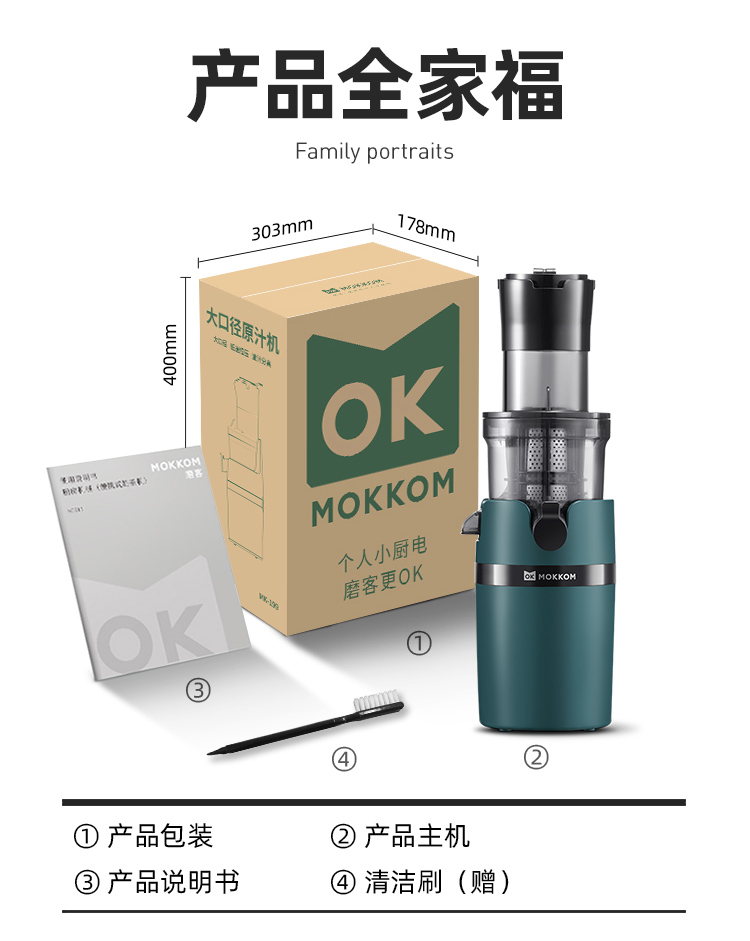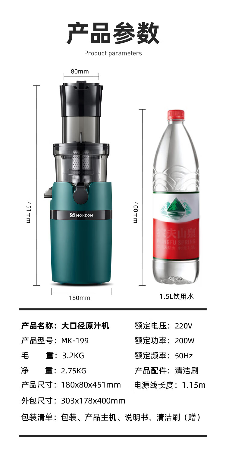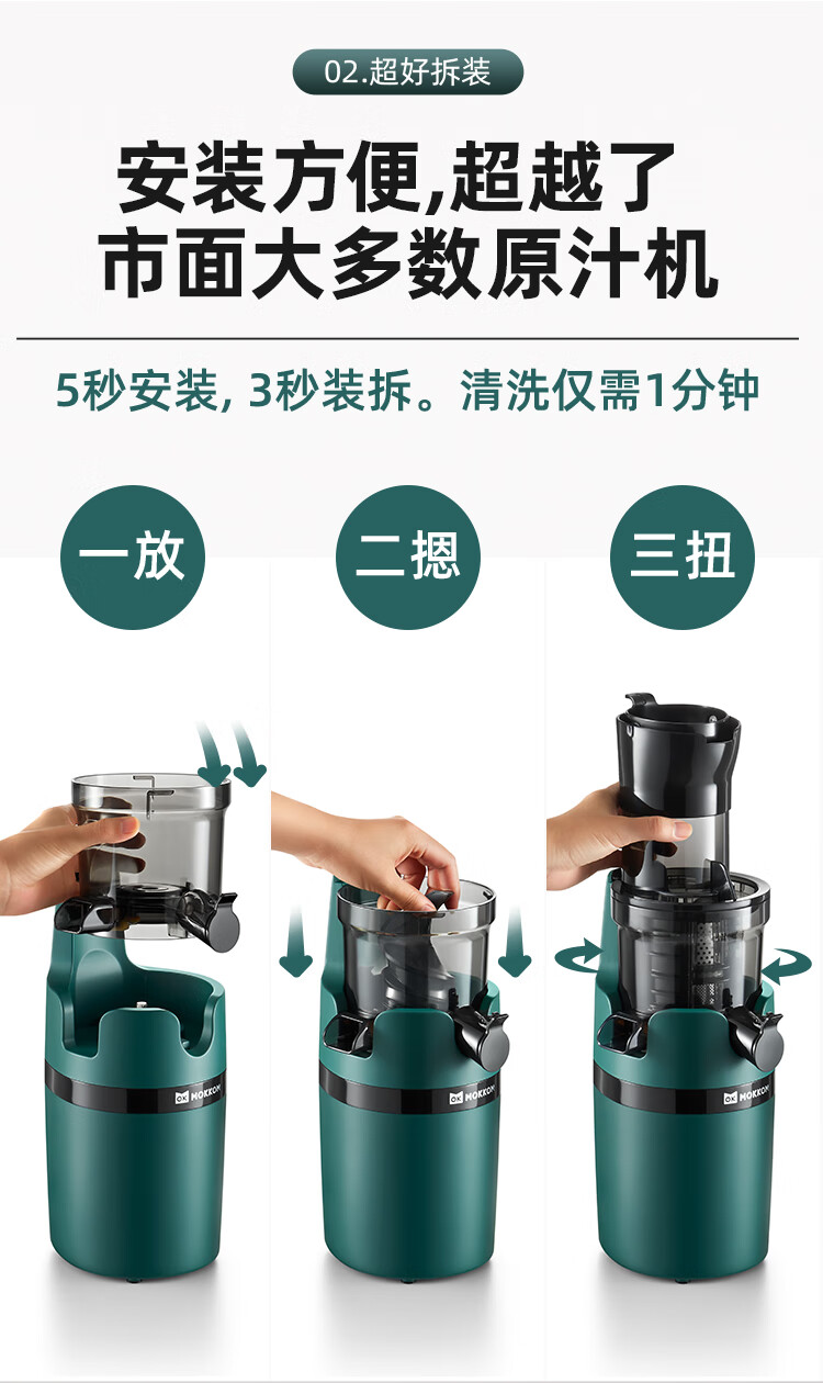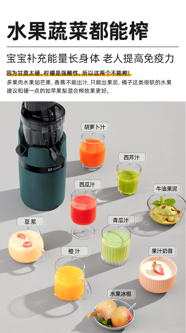 mokkom 磨客原汁機榨汁機家用果汁機渣汁分離大口徑商用多功能鮮炸果汁蔬菜打水果機器小型攪拌機 大口徑軍綠色