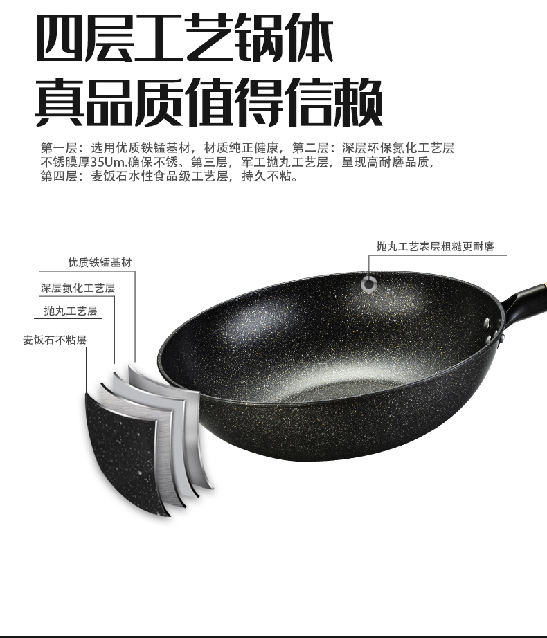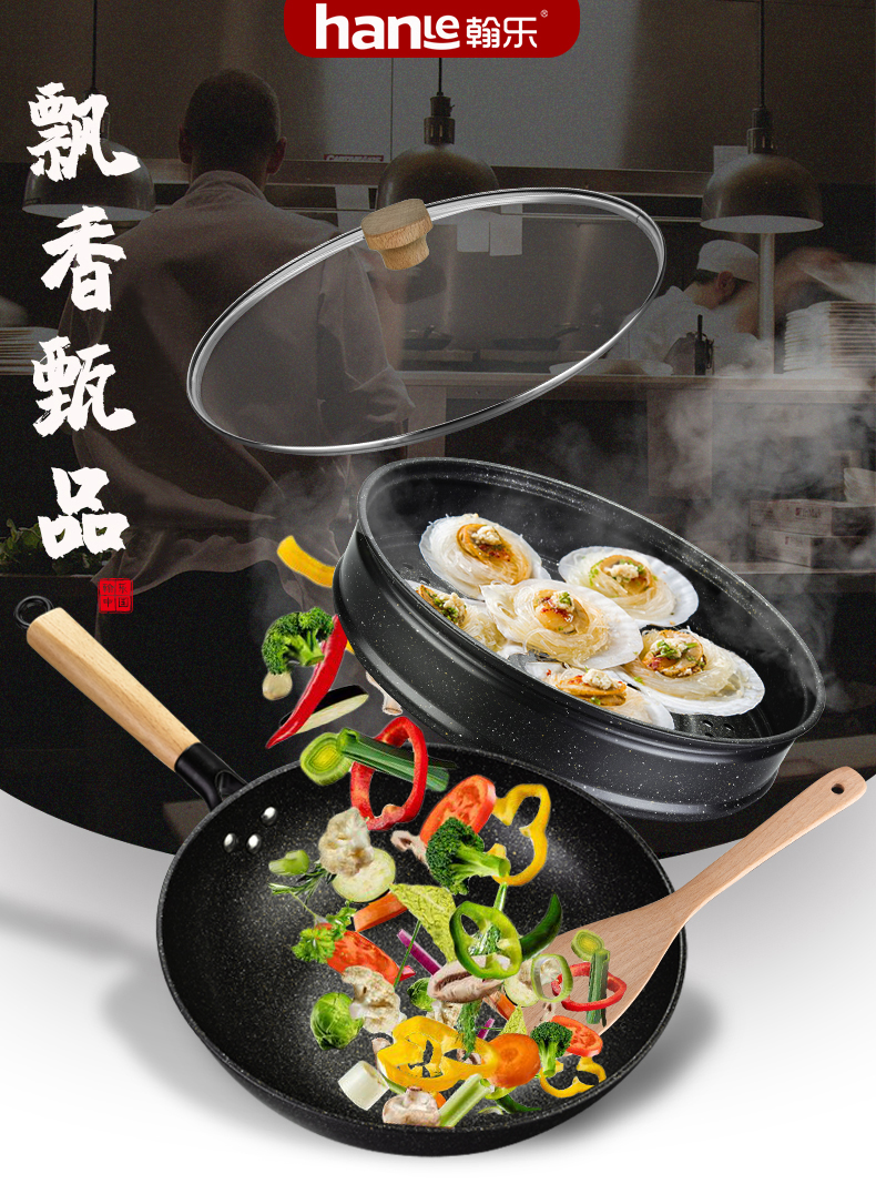 硬氧不粘,輕油少煙,可用鐵鏟,耐磨耐用加復(fù)合底可用電磁爐明火