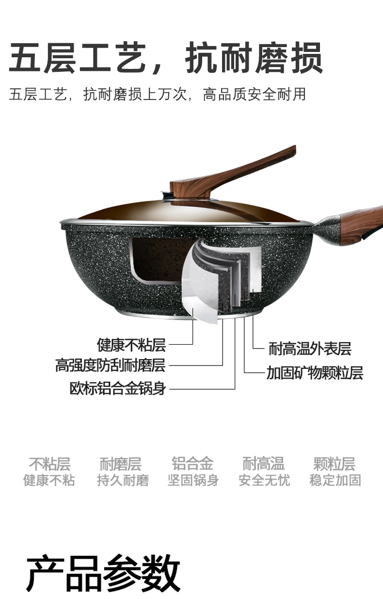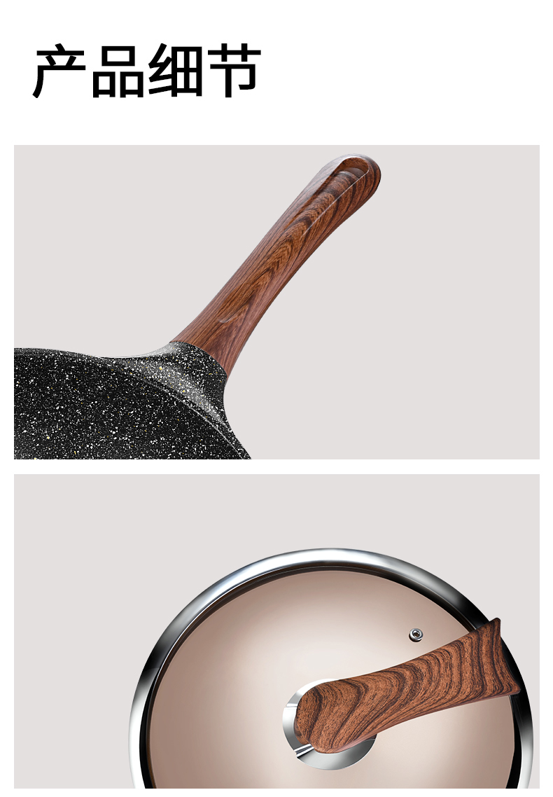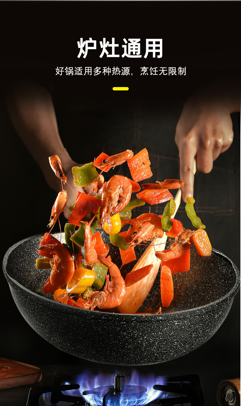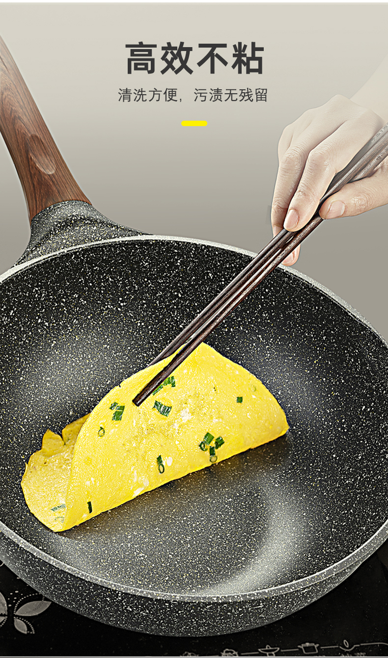 復(fù)合底快速導(dǎo)熱省氣省電,有質(zhì)感、健康材質(zhì),不粘鍋,好用易清洗