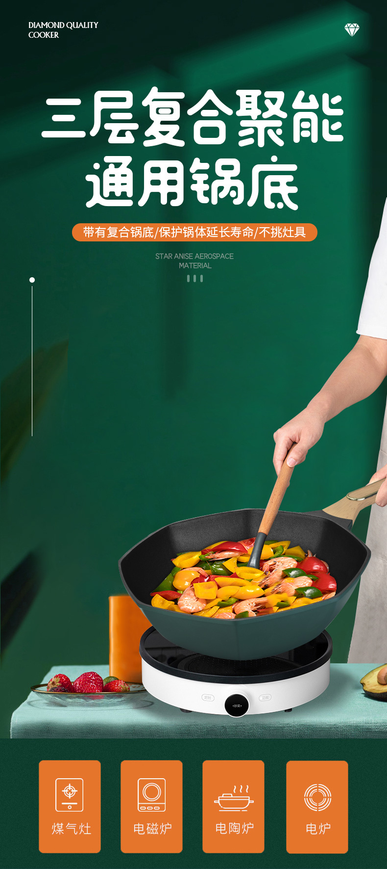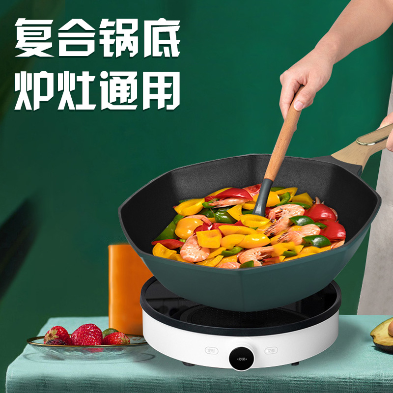 健康材質不粘鍋,好用易清洗,復合底導熱均勻迅速,輕油少煙,不挑爐灶、有質感高顏值