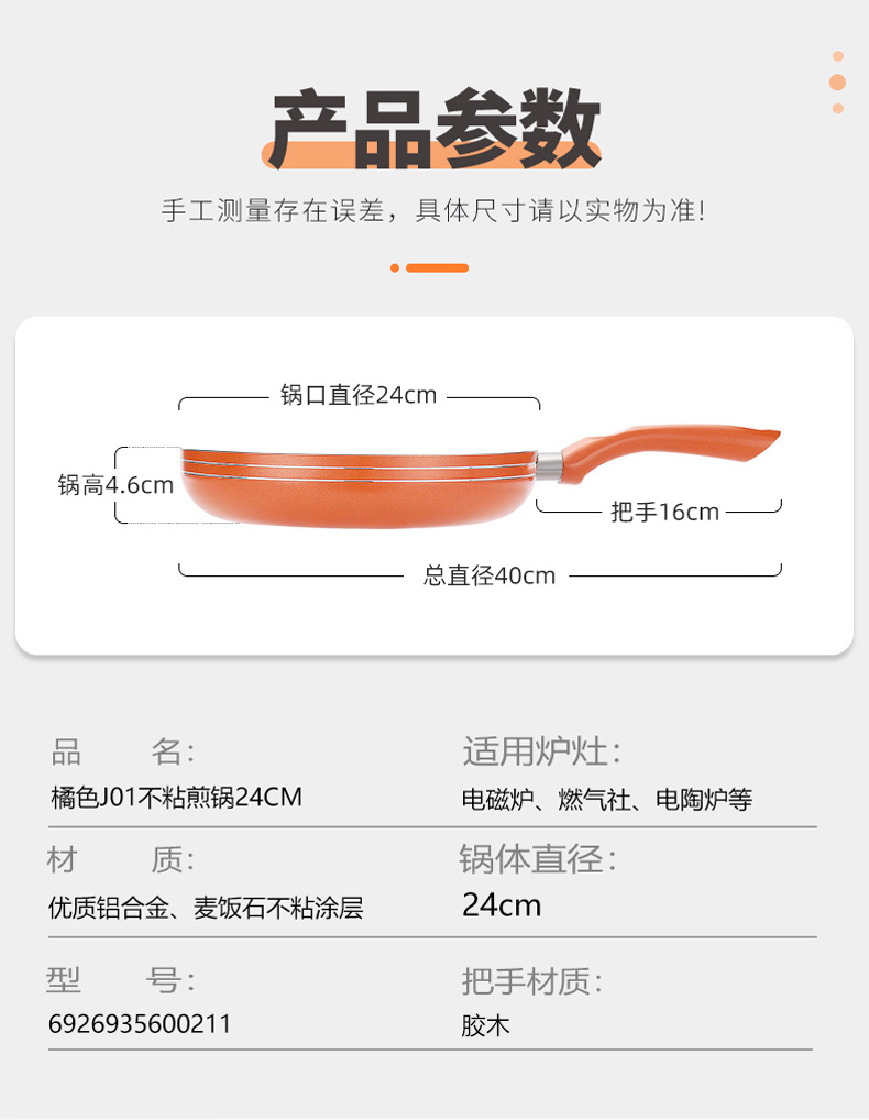 翰樂橘色J01不粘煎鍋24CM