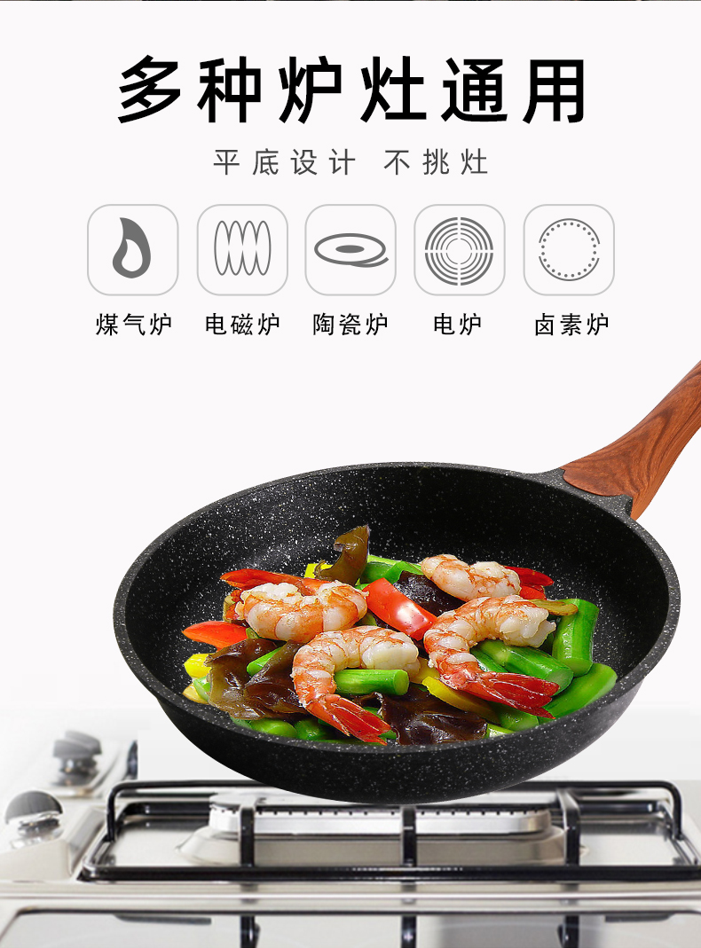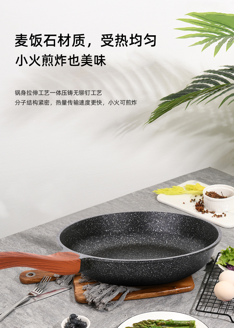 復合底快速導熱省氣省電,有質感、健康材質,不粘煎鍋,好用易清洗