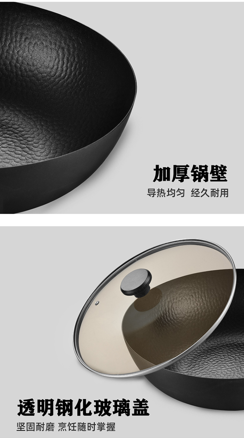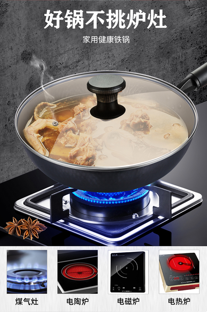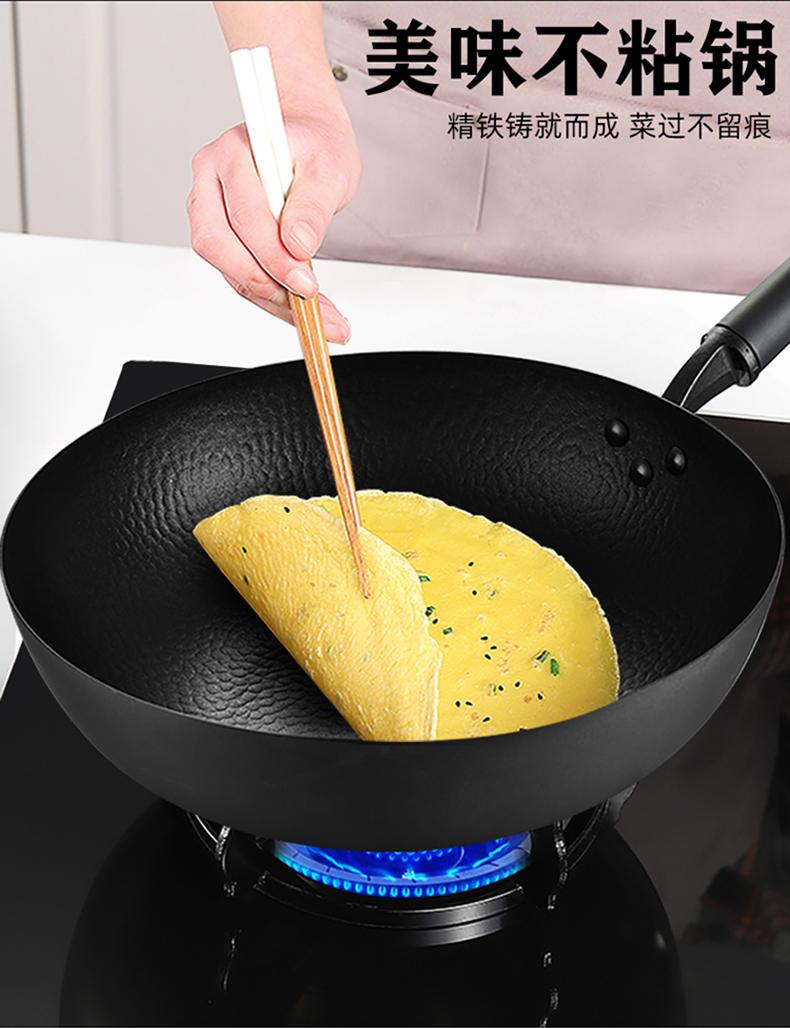 高端產(chǎn)品,優(yōu)質(zhì)精鐵基材,經(jīng)久耐用不易粘,好用易清洗,天然氣、明火專用