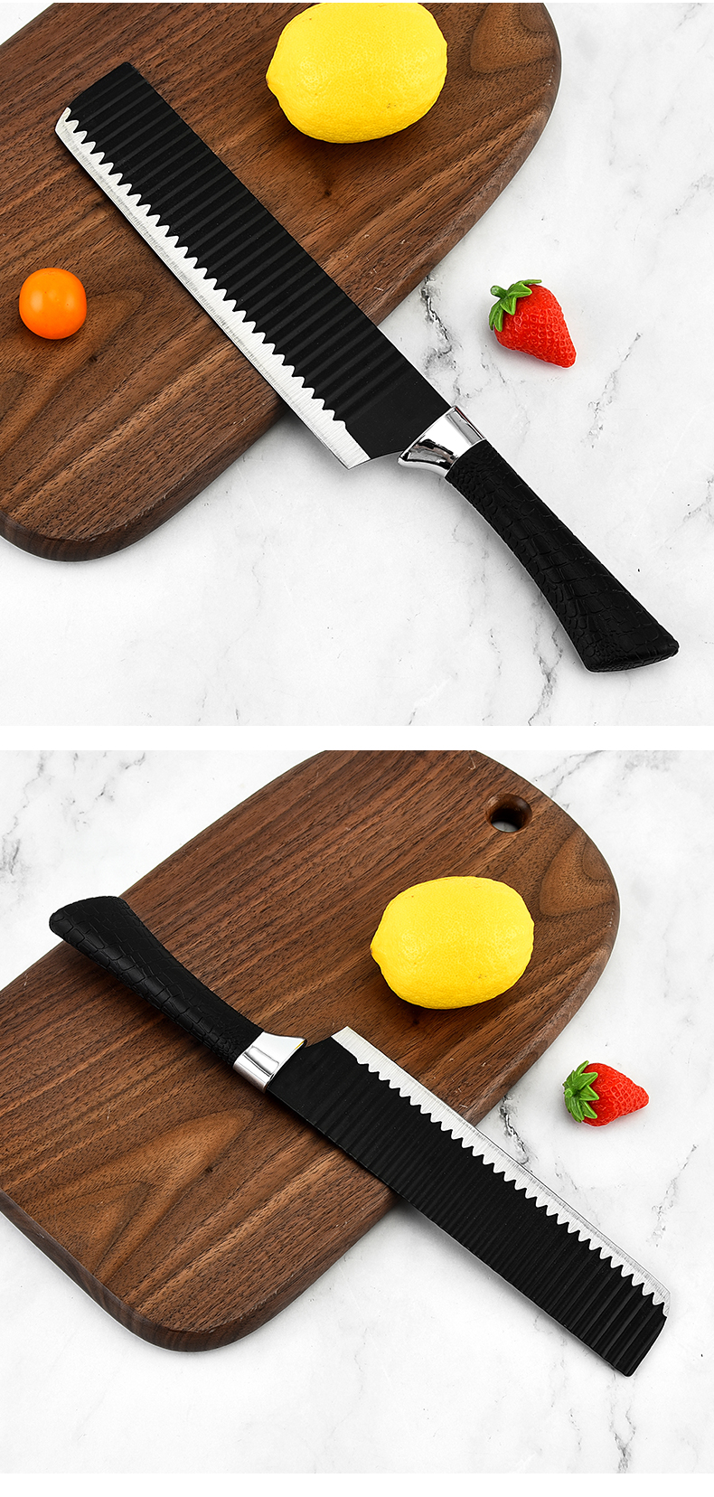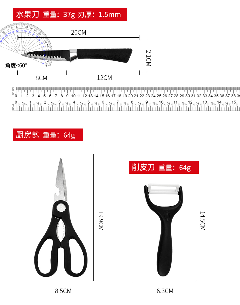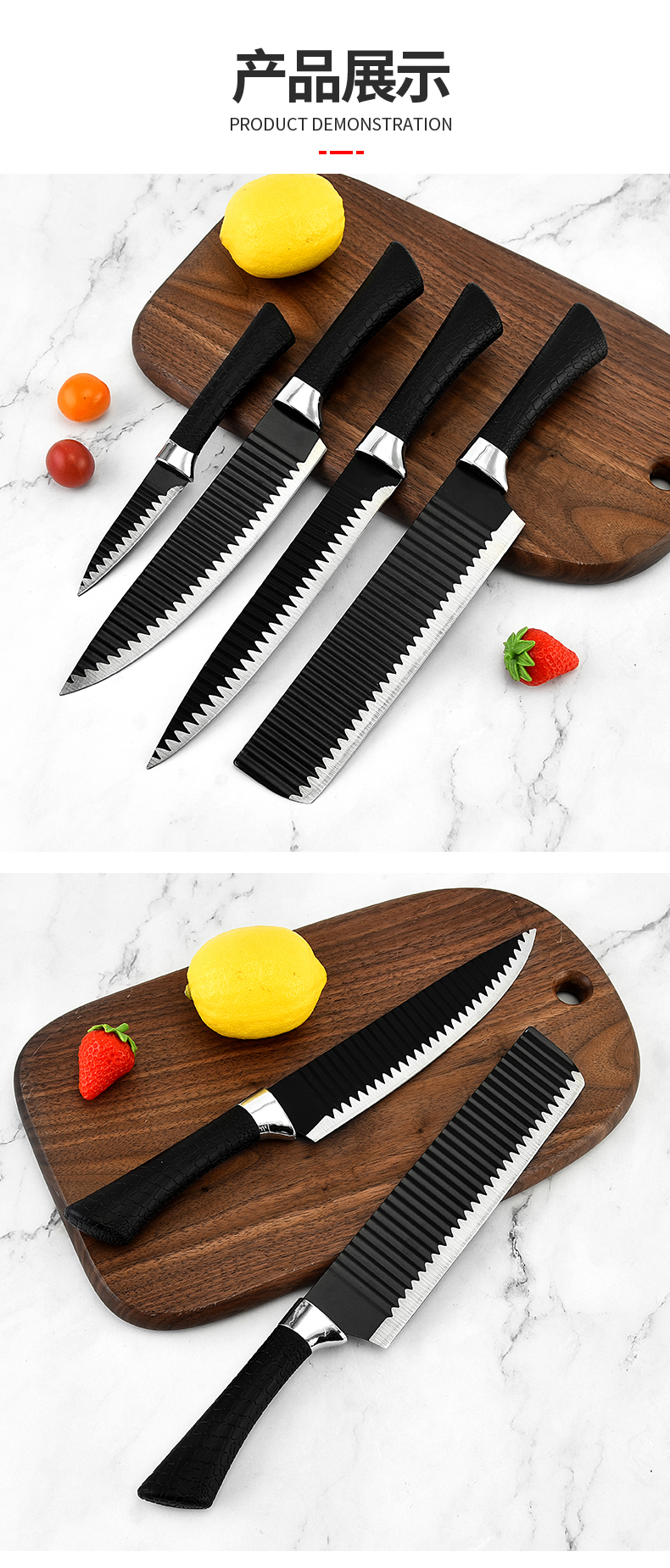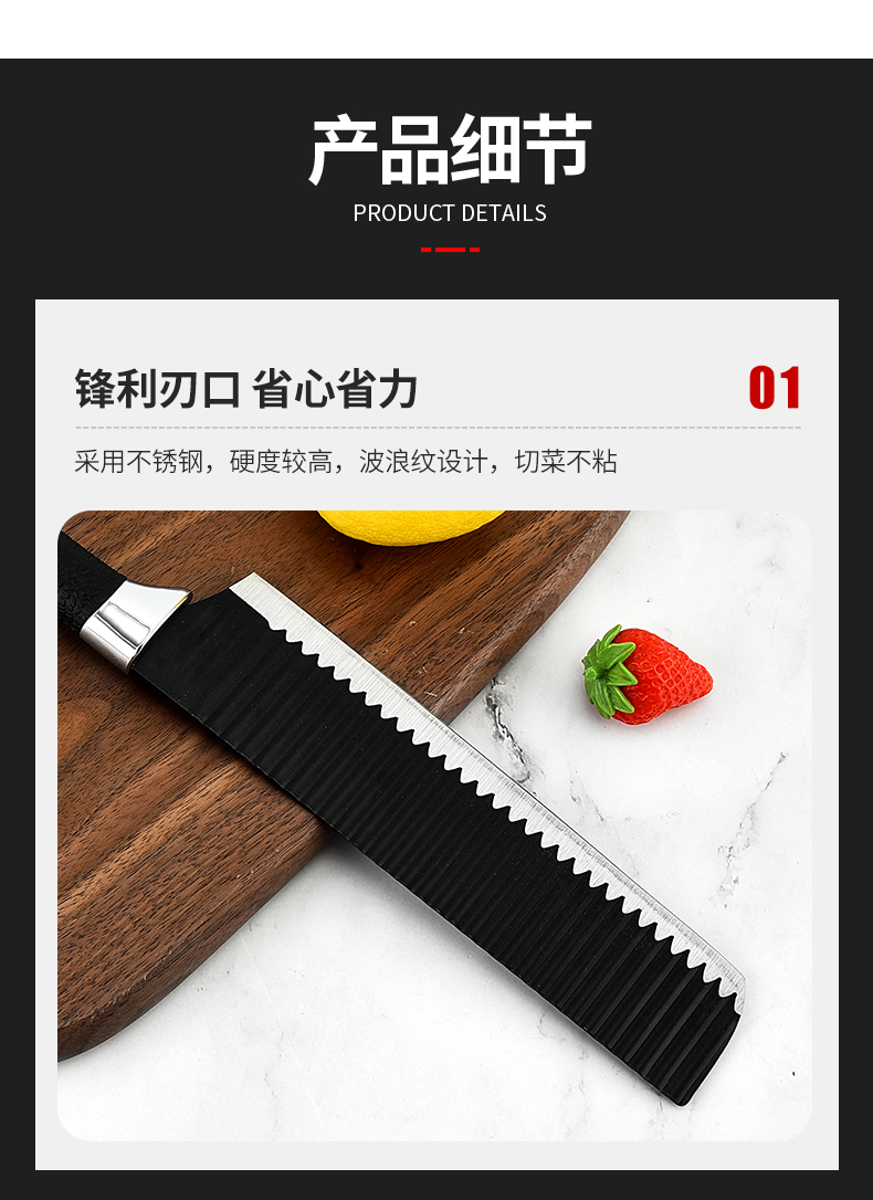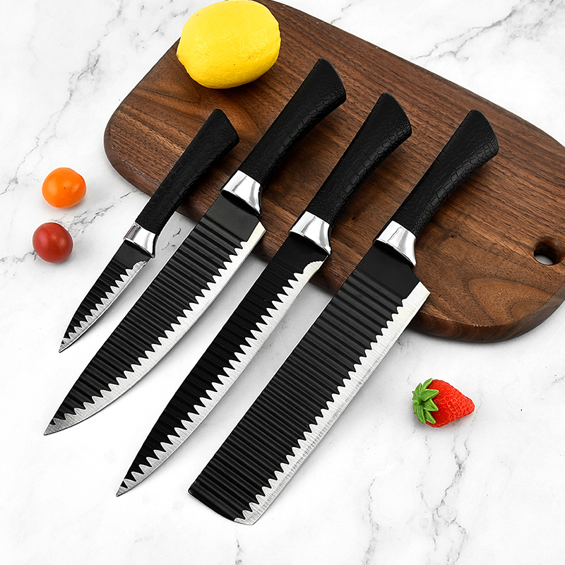 黑鋼硬度高,耐用鋒利,手柄握感輕松舒適,刀刃用心打磨保證鋒利度,六件套滿足廚房所需