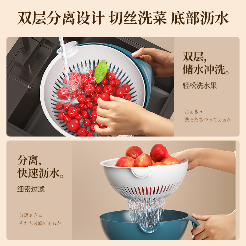 翰樂 多功能切菜器可當濾水籃(顏色隨機發)