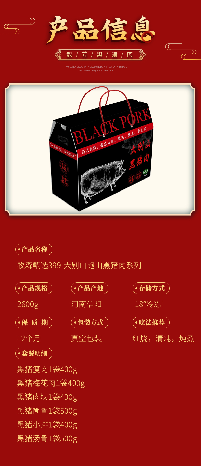 黑豬瘦肉400g/1袋 黑豬梅花肉400g/1袋 黑豬肉塊400g/1袋 黑豬筒骨500g/1袋 黑豬小排400g/1袋 黑豬湯骨500g/1袋