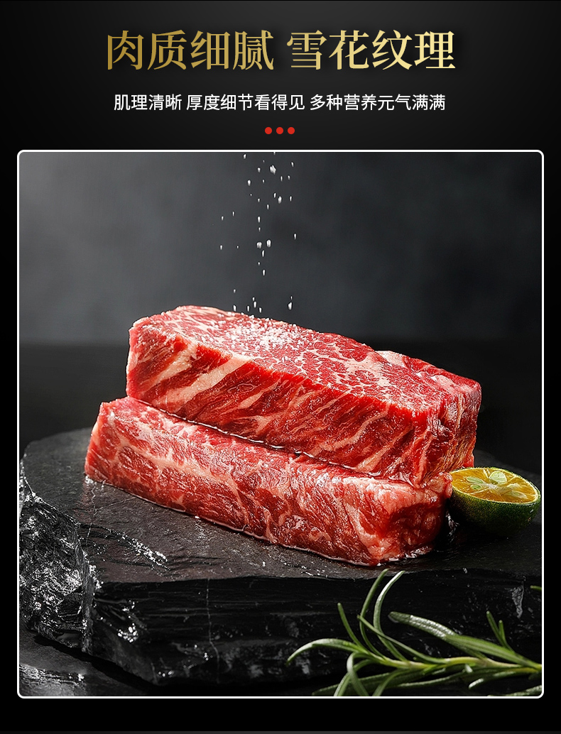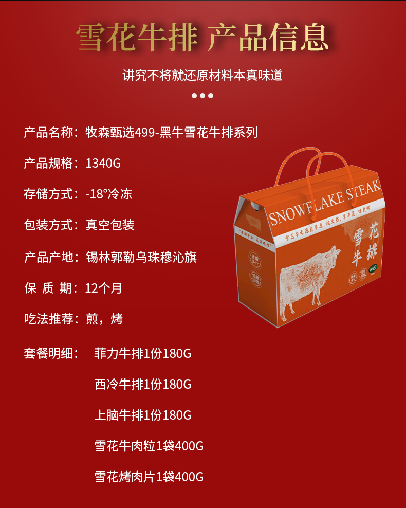 菲力牛排180g/1份 西冷牛排180g/1份 上腦牛排180g/1份 雪花牛肉粒400g/1袋 雪花烤肉片400g/1份