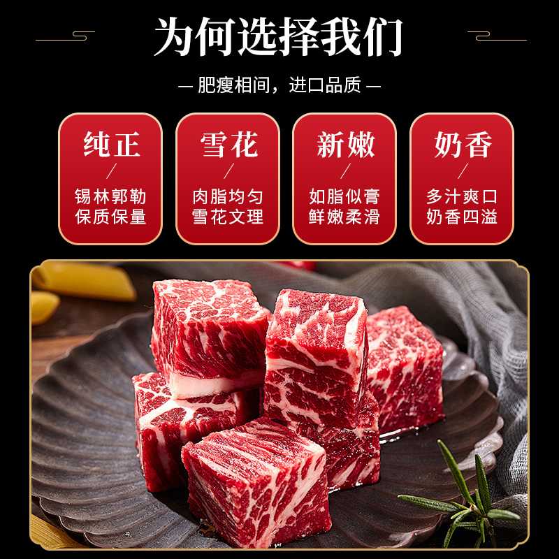 菲力牛排180g/2份 西冷牛排180g/1份 上腦牛排180g/1份 雪花牛肉粒400g/1袋 雪花烤肉片400g/1份