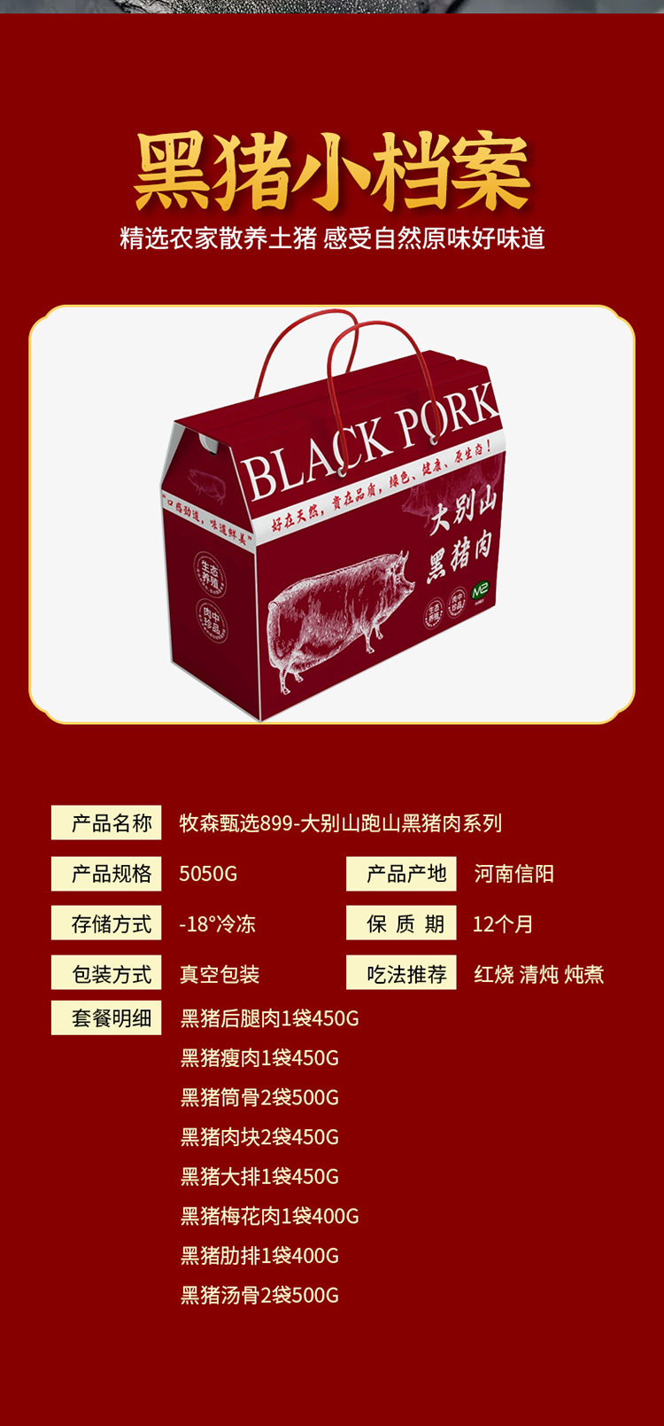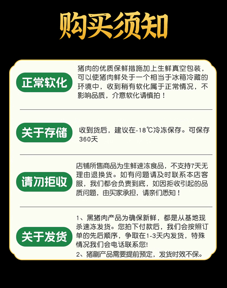 黑豬后腿肉450g/1袋 黑豬瘦肉450g/1袋 黑豬筒骨500g/2袋 黑豬肉塊450g/2袋 黑豬大排450g/1袋 黑豬梅花肉400g/1袋 黑豬肋排400g/1袋 黑豬湯骨500g/2袋