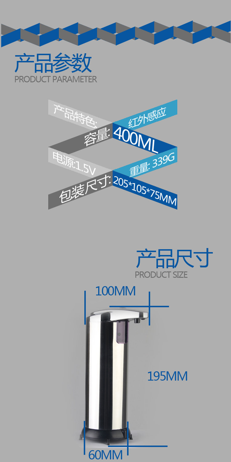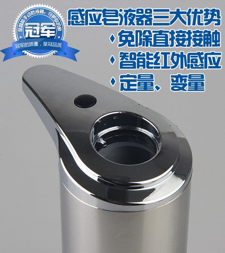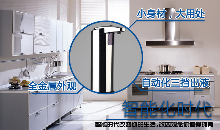 感應(yīng)皂液是現(xiàn)代生活中不可缺少的廚衛(wèi)用品,可以裝洗手液,沐浴露,洗發(fā)水,洗潔精,醫(yī)用手消毒液等清潔消毒液。這款是臺(tái)面式的,裝電池用的,裝四節(jié)7號(hào)電池,可以用半年以上。安裝方便。