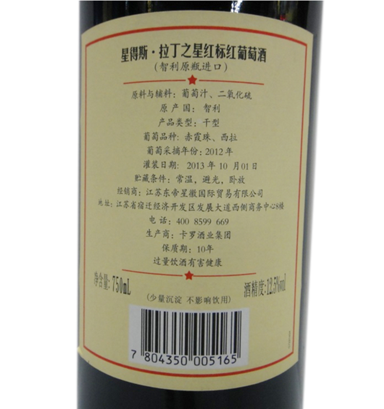 星得斯·拉丁之星 紅標(biāo) 智利原裝進(jìn)口紅酒 葡萄酒