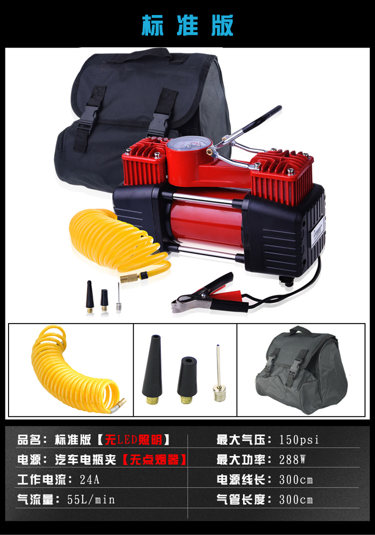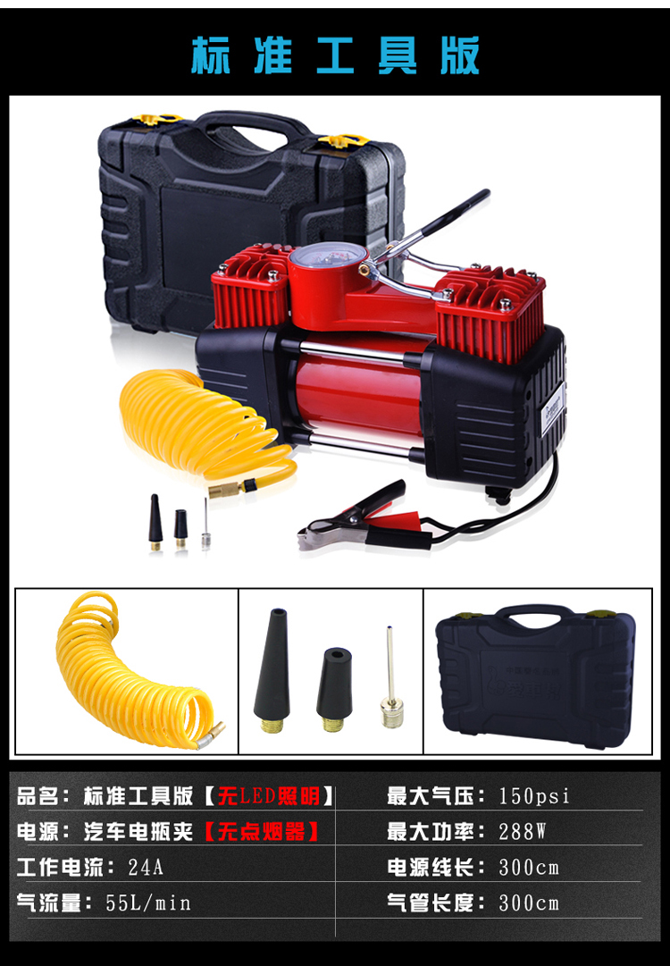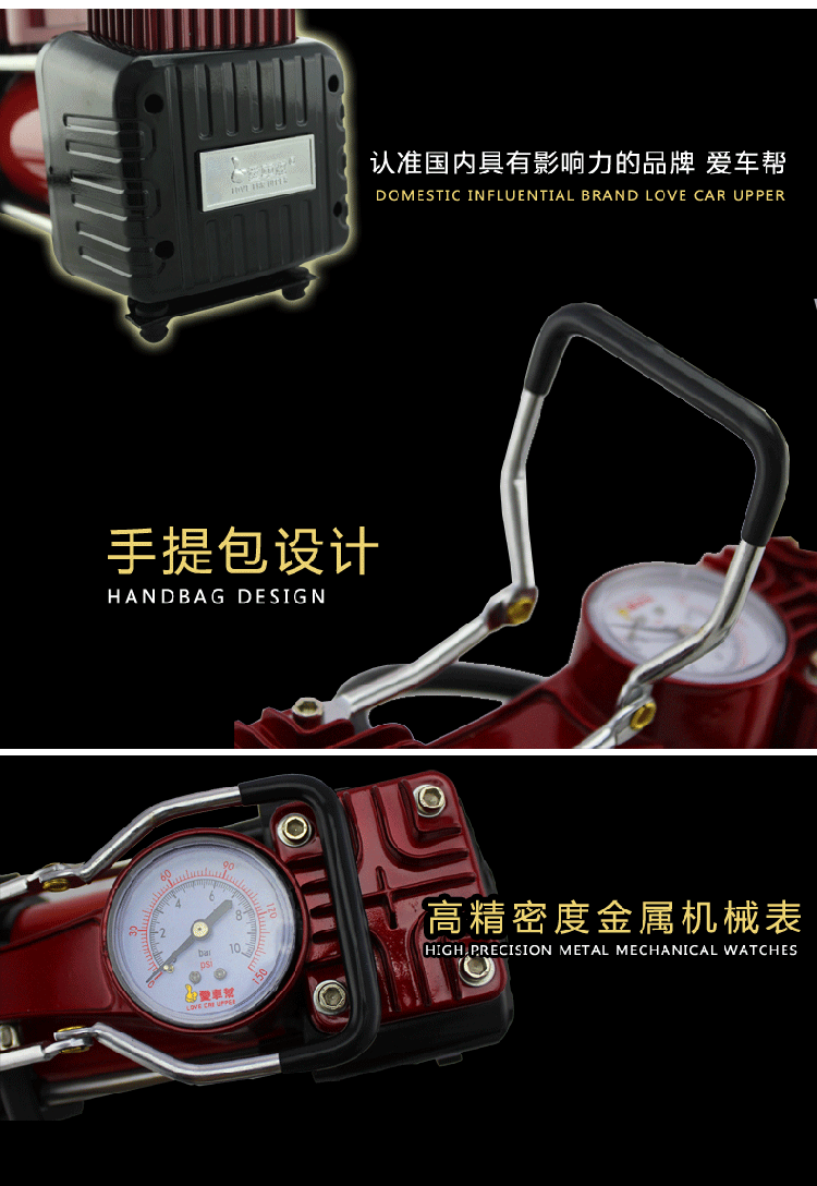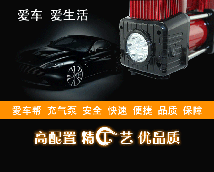 商品名稱:愛車幫車載充氣泵汽車便攜式車載雙缸大功率輪胎打氣泵HL-8807