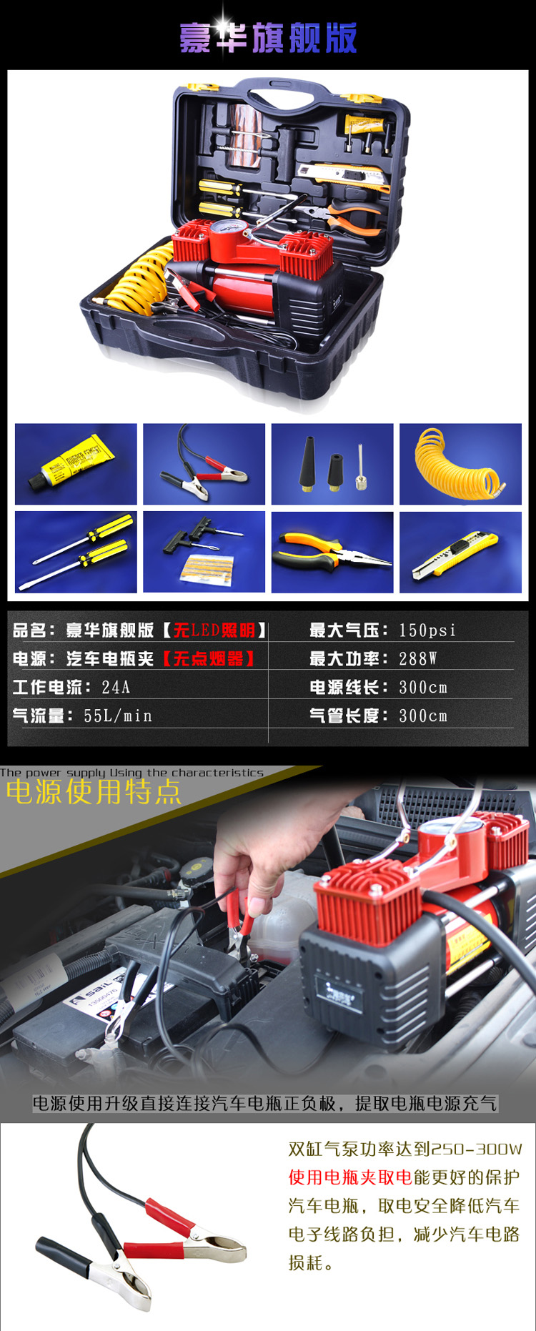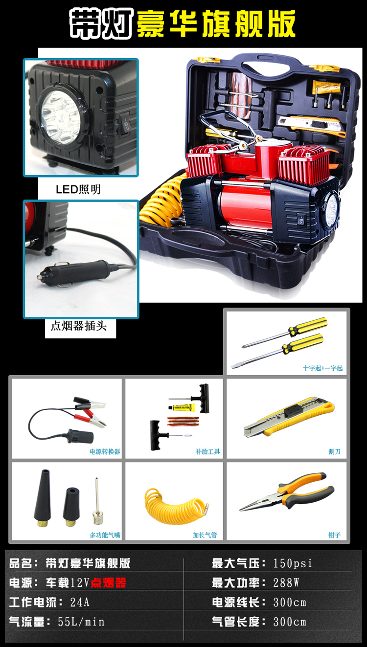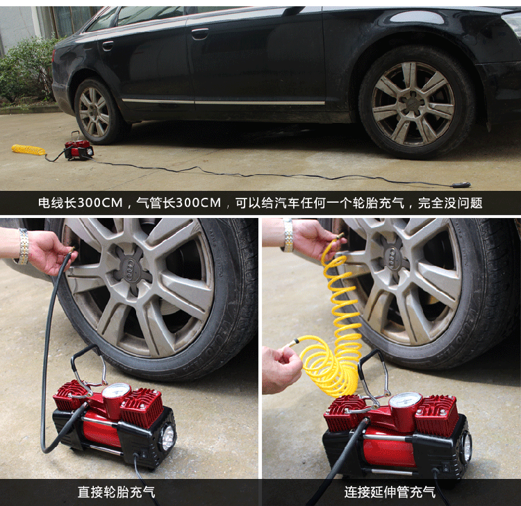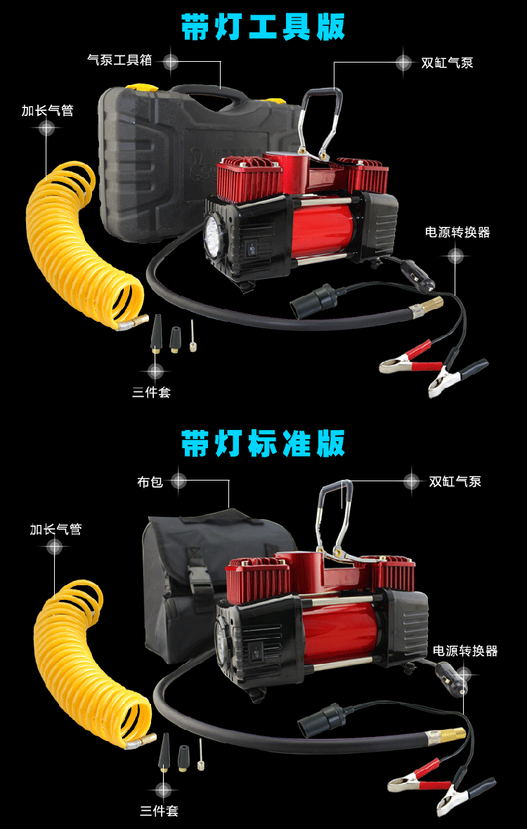 商品名稱:愛車幫車載充氣泵汽車便攜式車載雙缸大功率輪胎打氣泵HL-8807