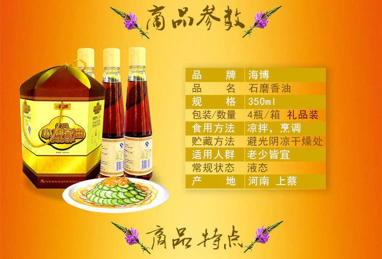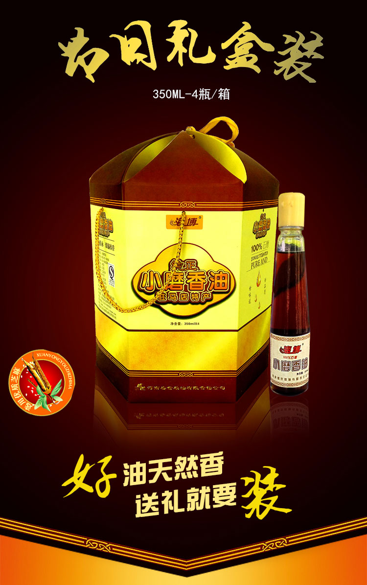 盛世禮盒 石磨小磨香油食用植物油調味芝麻油320ml*4